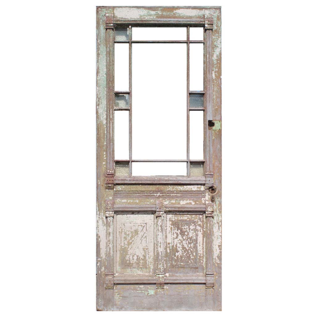 A fabulous antique Eastlake door, dating from the 1880’s and salvaged out of a Queen Anne style home in Louisville, KY. This door features a center pane bordered by several smaller panes; below sits a small shelf and two decorative wood panels. This door is in good antique condition, and is missing most of its glass (as pictured). This gorgeous reclaimed Queen Anne door measures 32” wide, 78-3/4” tall, and 1-3/8” thick. Because of its size, the door requires a custom shipping quote, please contact us if you have any questions.