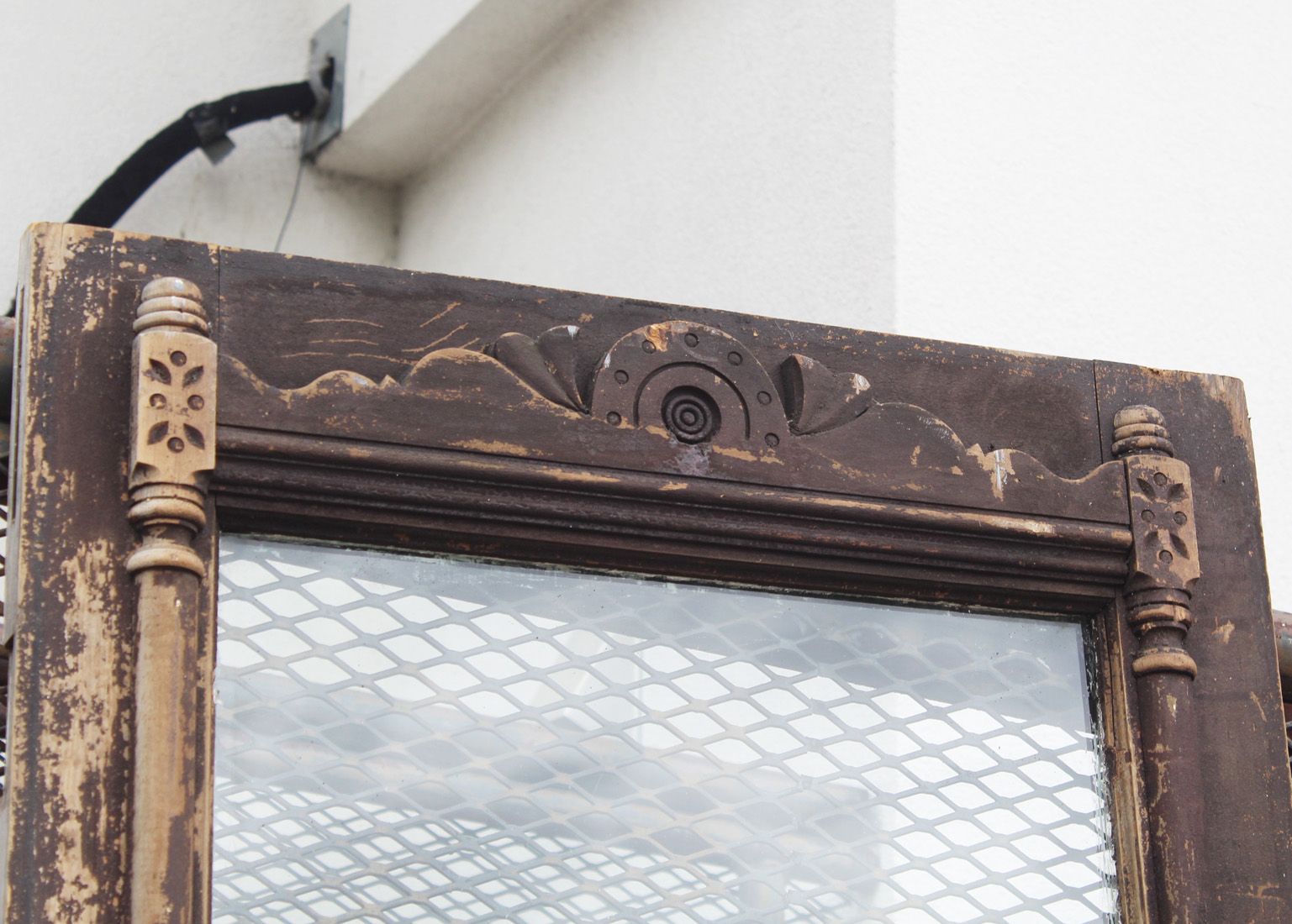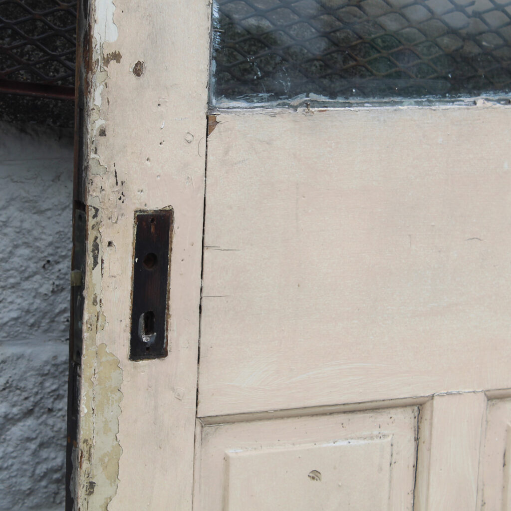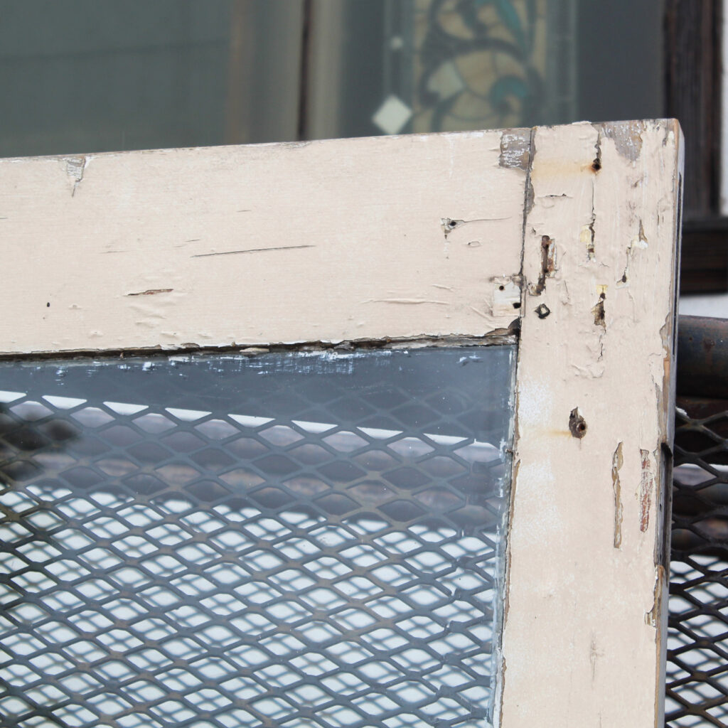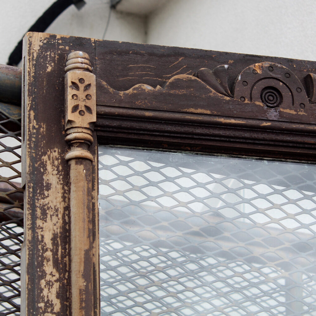 A wonderful antique Eastlake door, dating from the 1890’s and salvaged from a home in Kentucky. This door features a half view window surrounded by decorative raised and carved trim. It is in good antique condition with the expected chips, dings, and holes typical of an old door (as pictured). This reclaimed door measures 32″ wide, 79-3/4″ tall, and 1-3/8″ thick. It requires a custom shipping quote; please contact us if you have any questions.