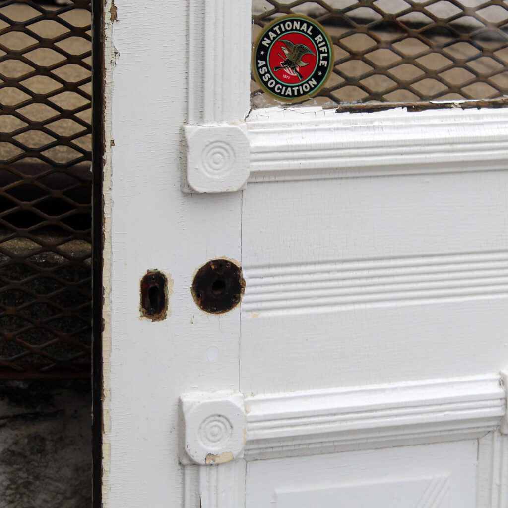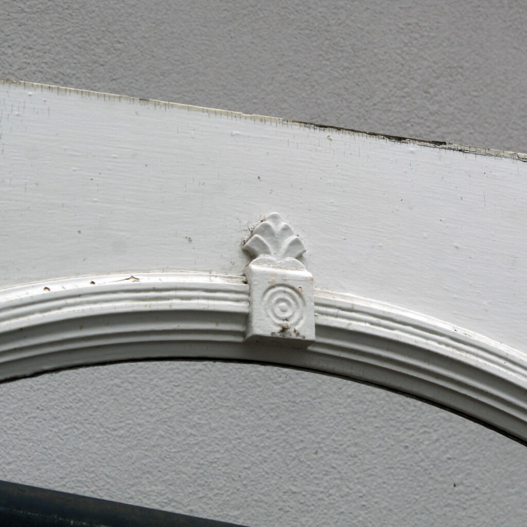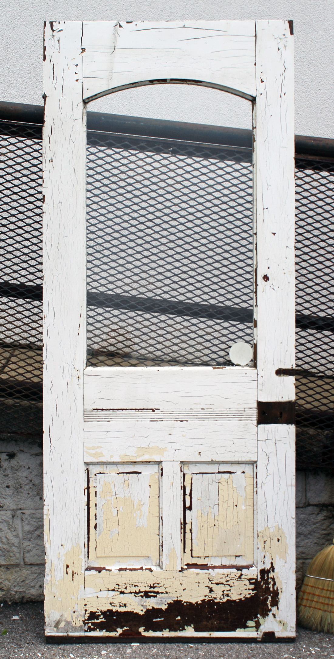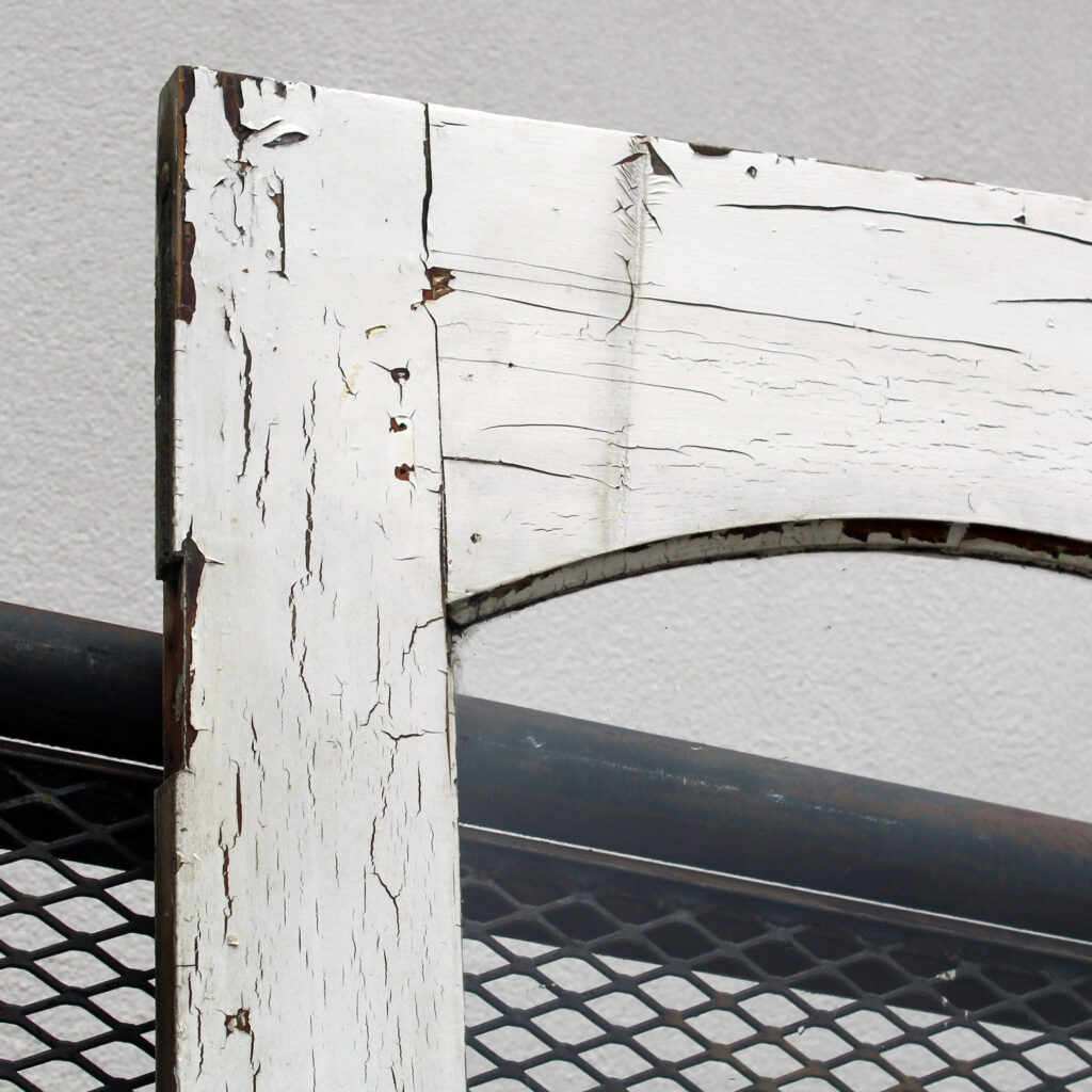 A stunning antique Eastlake door, dating from the 1880s and salvaged from a home in Indiana. This old door features a half-view arched window, chippy paint, and playful raised trim. The door is in good antique condition with the expected chips, dings, and wear typical of an old door (as pictured). It measures approx. 32″ wide, 79″ tall, and 1-3/8″ thick. This door requires a custom shipping quote; please contact us if you have any questions. Coordinating doors can be found under product codes NED2681-RW & NED2680-RW.