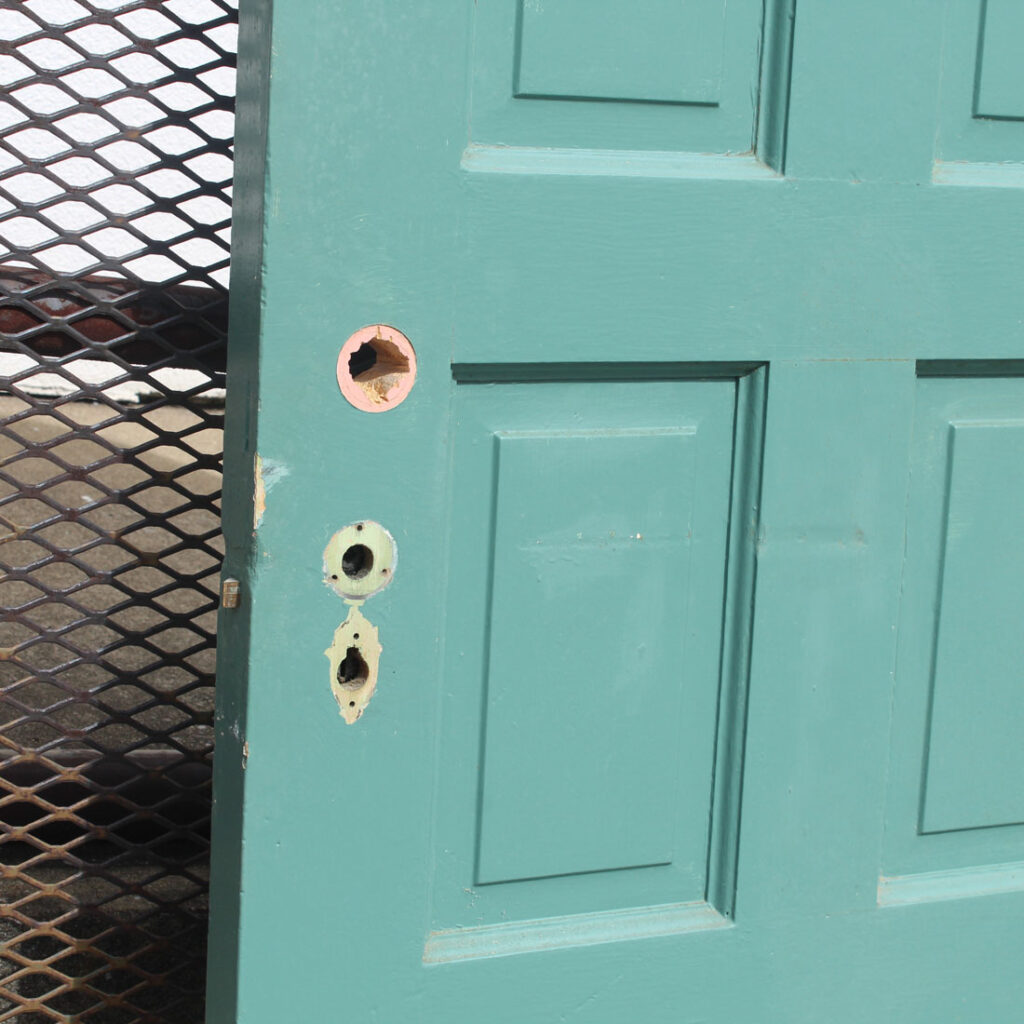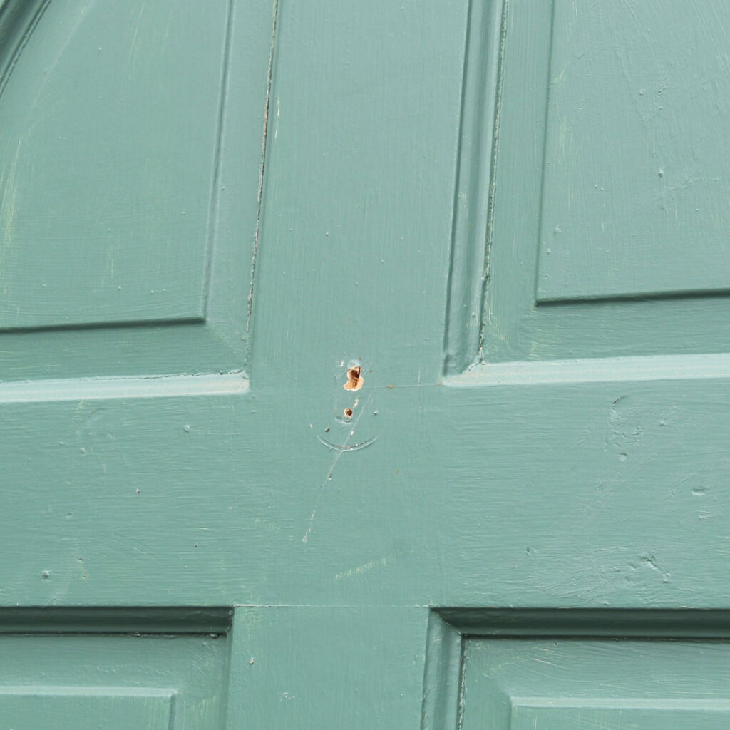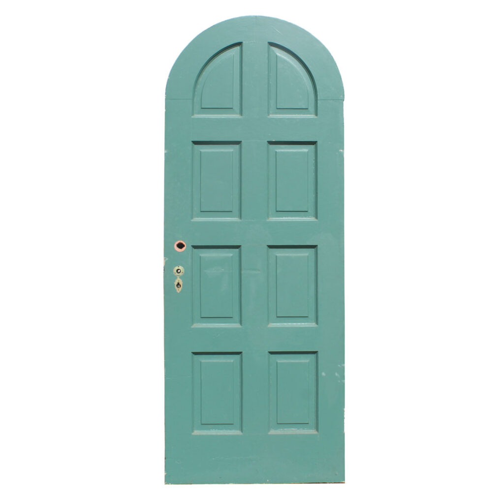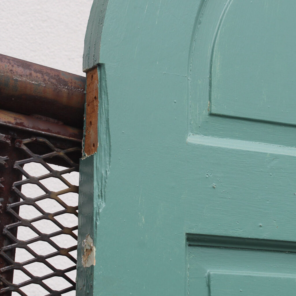 A wonderful antique arched door, salvaged out of a home in Tennessee and dating from the early 1900’s. This door is in very good antique condition, and has the expected chips, scratches, and dings typical of an old door including some minor hinge damage (pictured.) The door measures 29-7/8″ wide, 79-1/8″ tall, and 1-7/8″ thick. This piece requires a custom shipping quote, please contact us if you have any questions.