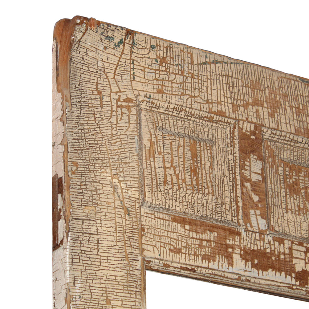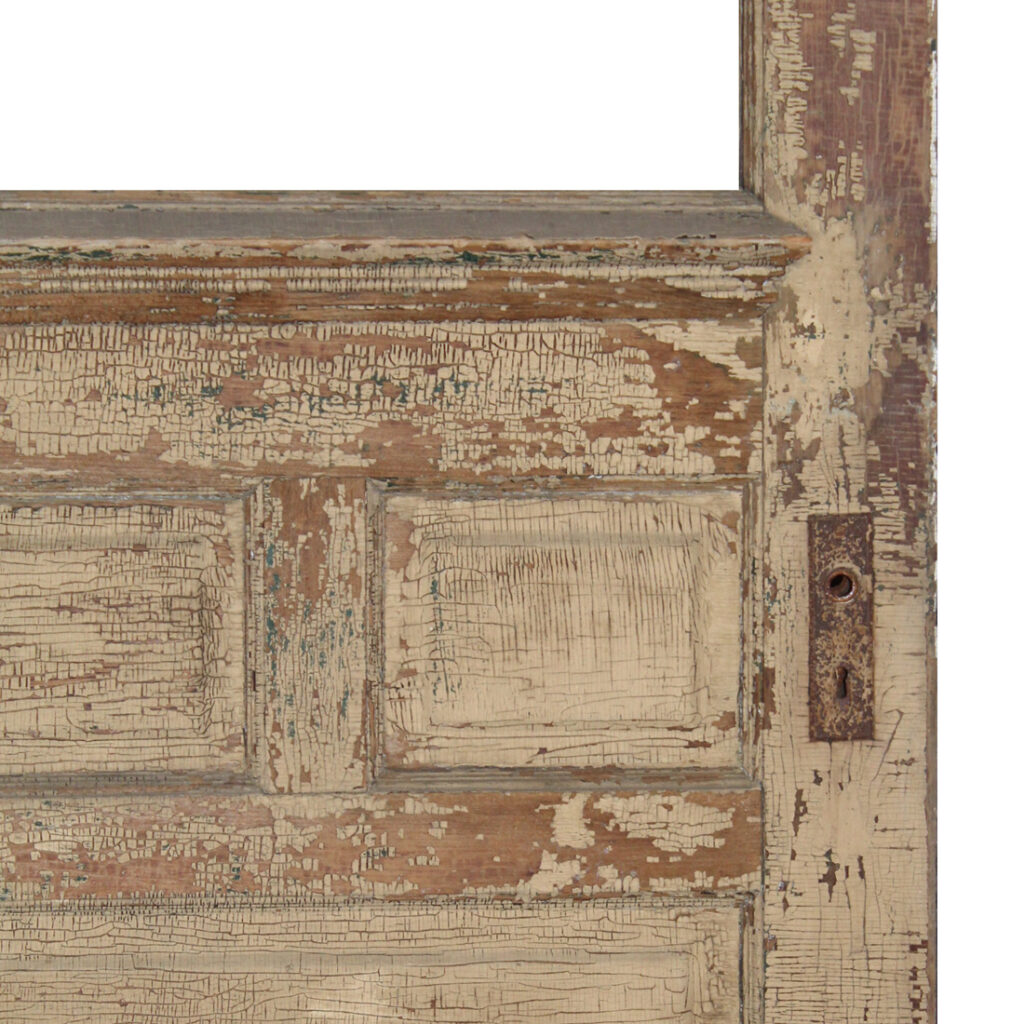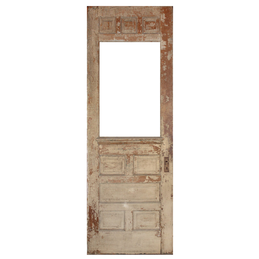 A delightful antique cottage door, dating from the early 1900’s and salvaged from a home in Kentucky. This old door features a half view window surrounded by a charming configuration of raised wood panels. It is in good antique condition with the expected chips and dings typical of an old door, and the glass is missing, as pictured. This reclaimed door measures 30-1/8″ wide, 89-1/8″ tall, and 1-3/8″ thick. It requires a custom shipping quote; please contact us if you have any questions.