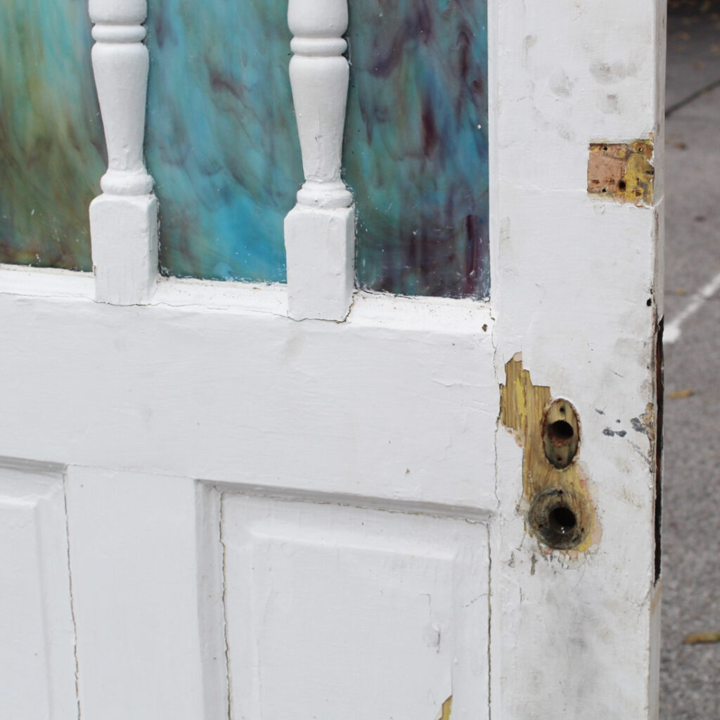 This door is in very good antique condition, and has the expected chips, scratches, and dings typical of an old door; the glass is also in good condition with no breaks or cracks (as pictured.) The door measures 31-1/4″ wide, 75″ tall, and 1-7/8″ thick. This piece requires a custom shipping quote, please contact us if you have any questions.