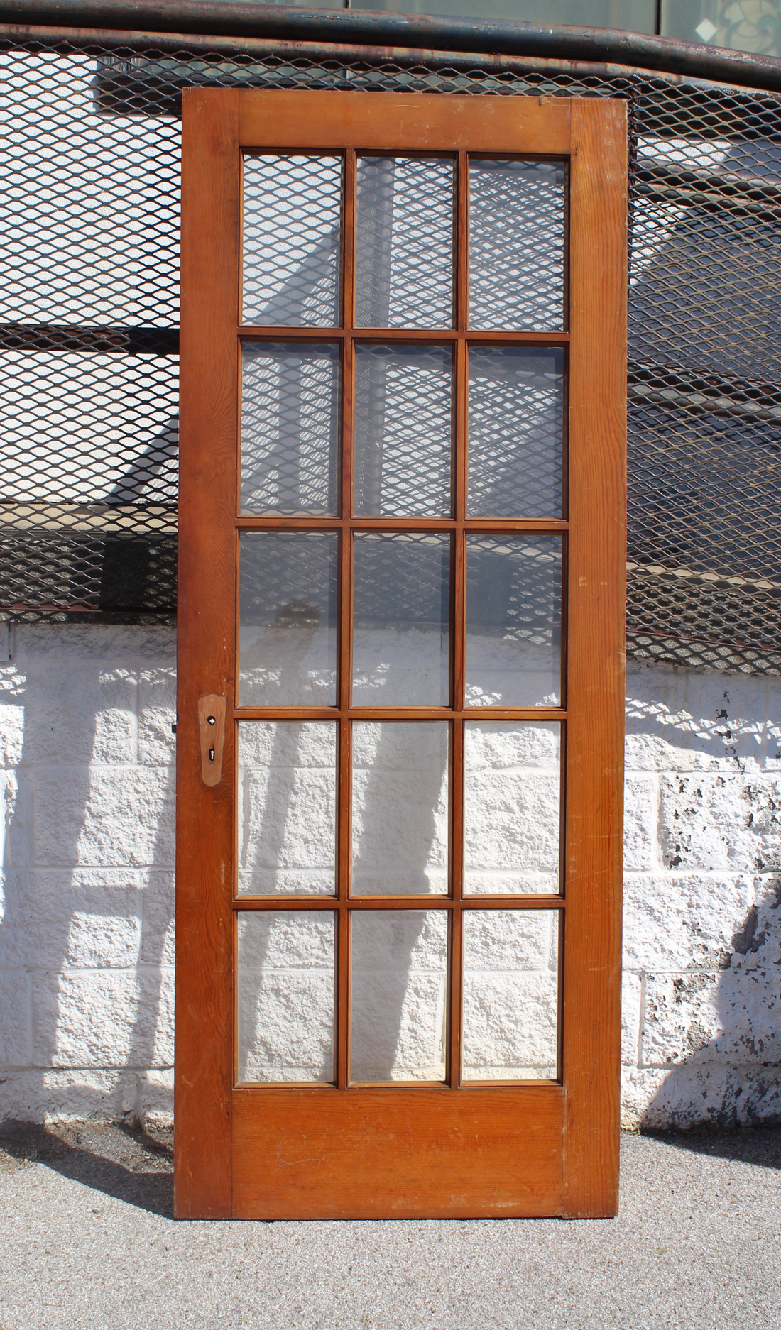A fabulous antique reclaimed French door, featuring 15 glass lights. The door is in very good antique condition with the expected wear (as pictured) and is stained on both sides. It measures 32″ wide by 80″ tall. The measurements for this door are approximate, and may vary 3/8 – 1/4″. This door requires a custom shipping quote; please contact us if you have any questions.