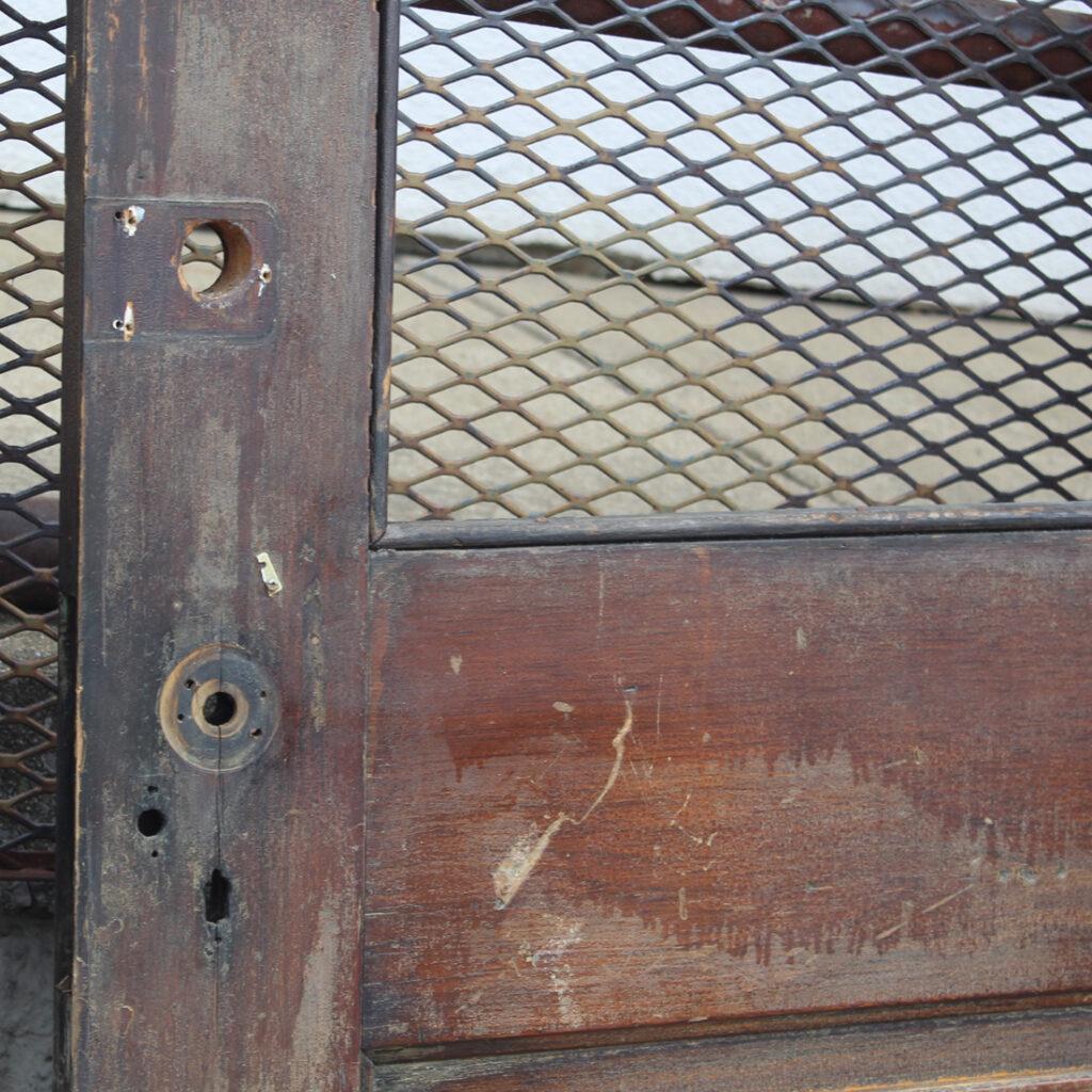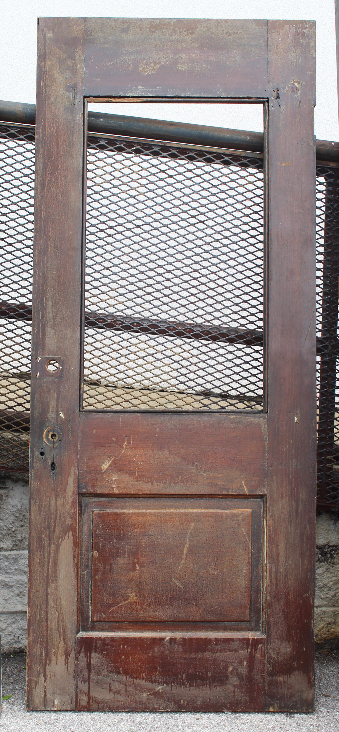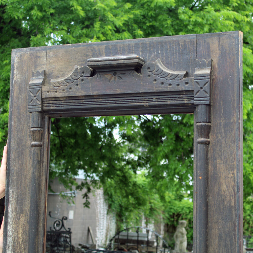 A stunning antique Eastlake door, dating from the late 1800’s and salvaged from a home in Indianapolis, IN. This stained door features a half view window surrounded by decorative trim, perched above a playful carved wood panel below. It is in good antique condition with the expected chips, dings, and holes typical of an old door; the door is missing its glass (as pictured). This reclaimed door measures 32″ wide, 78-1/2″ tall, and 1-3/8″ thick. It requires a custom shipping quote; please contact us if you have any questions. A coordinating door can be found under product code NED2670-RW.