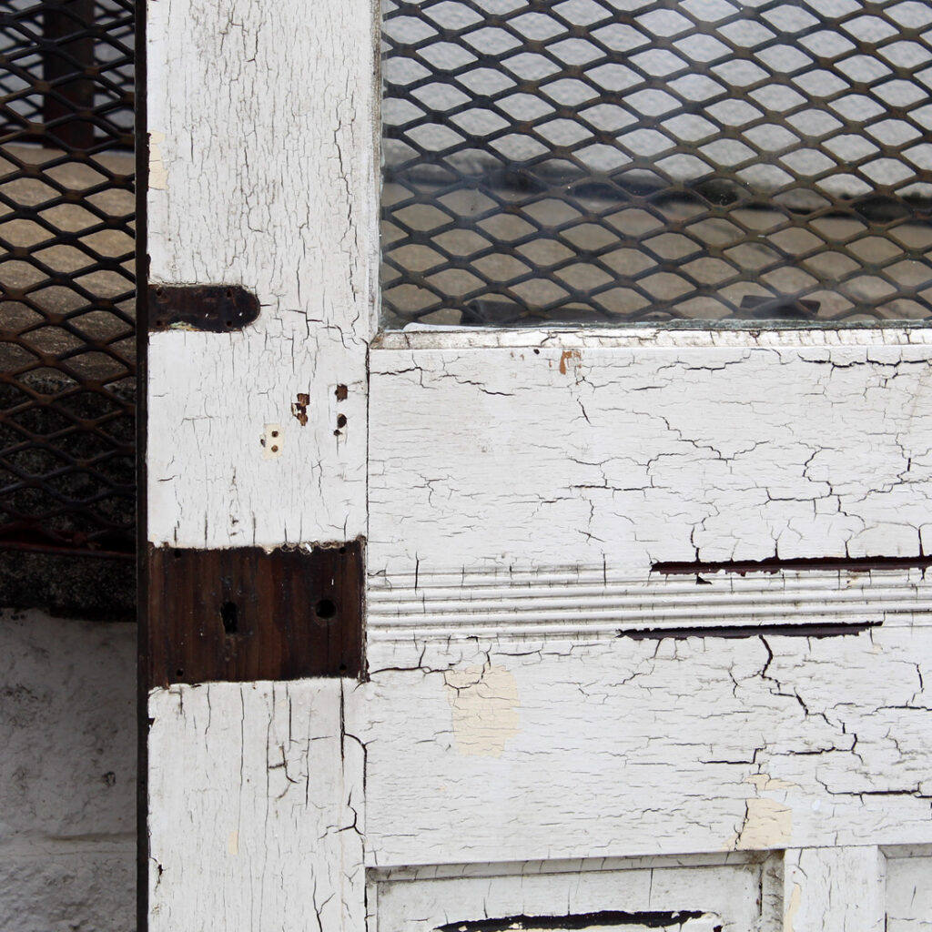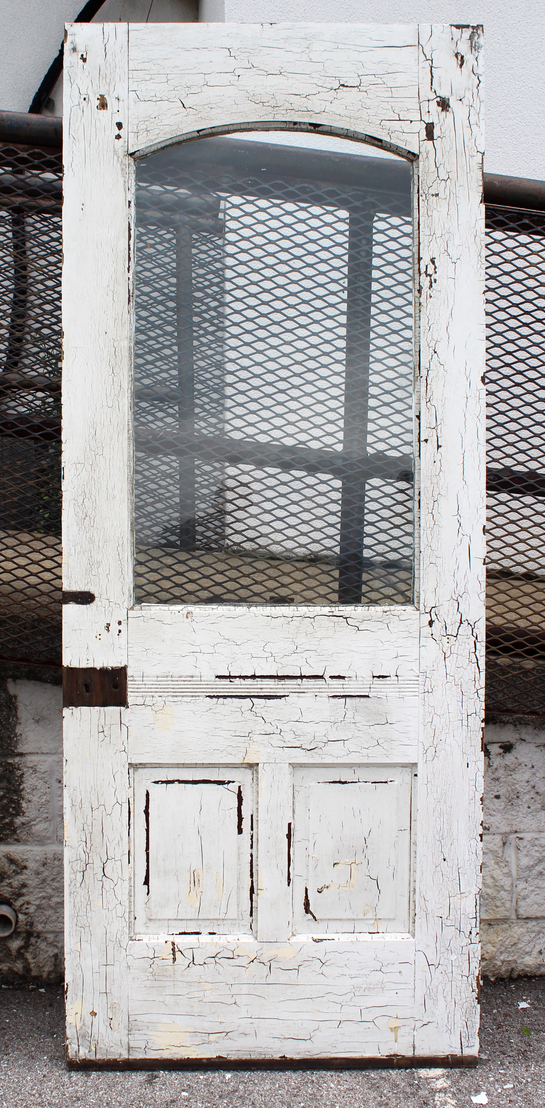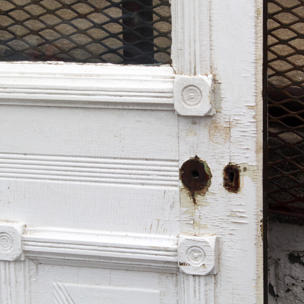 A gorgeous antique Eastlake door, dating from the 1880s and salvaged from a home in Indiana. This old door features a half-view arched window, chippy paint, and playful raised trim. The door is in good antique condition with the expected chips, dings, and wear typical of an old door (as pictured). It measures approx. 32″ wide, 80″ tall, and 1-3/8″ thick. This door requires a custom shipping quote; please contact us if you have any questions. Coordinating doors can be found under product codes NED2681-RW & NED2669-RW.