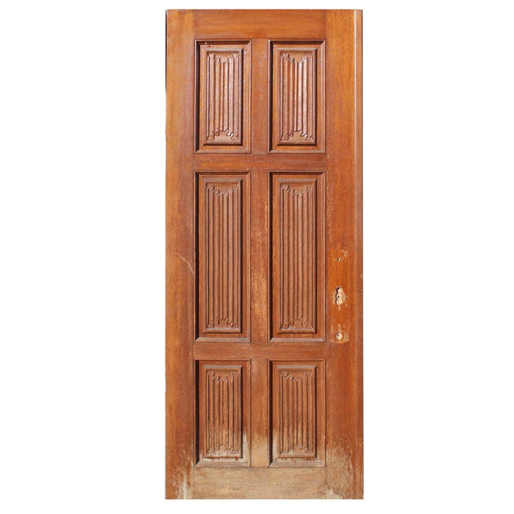 A stunning carved antique walnut French door that dates from the late 1800’s. This door features elegantly carved panels with a stylized linenfold motif on one side of the door, and is in very good condition with the various dings, scratches, and chips typical of an old door; there is slight wear along the bottom, as pictured. It measures approx. 30″ wide, 79-3/4″ tall, and is 1-3/4″ thick. Due to the size of this item, it requires a custom shipping quote; please contact us if you have any questions. A similar door can be found under product code NED1969-RW.