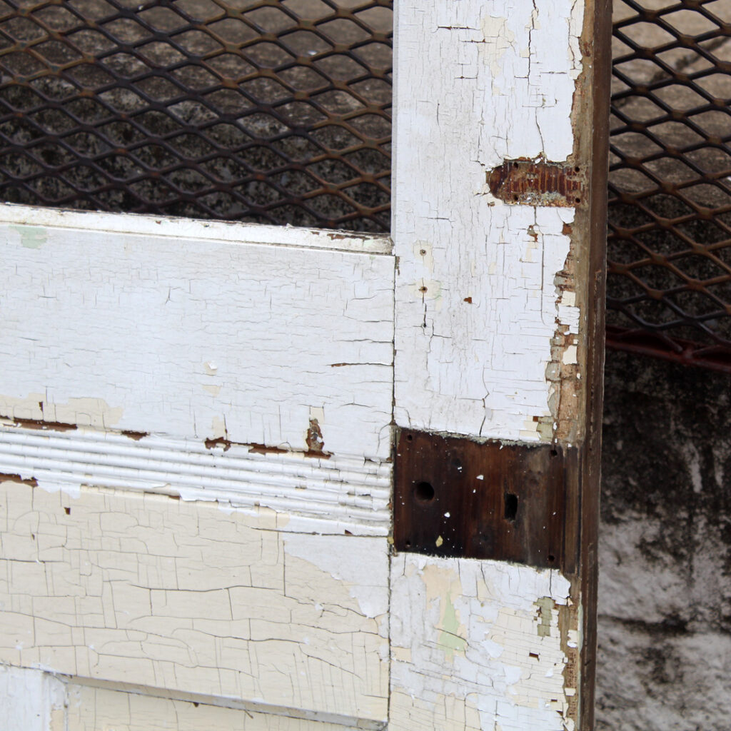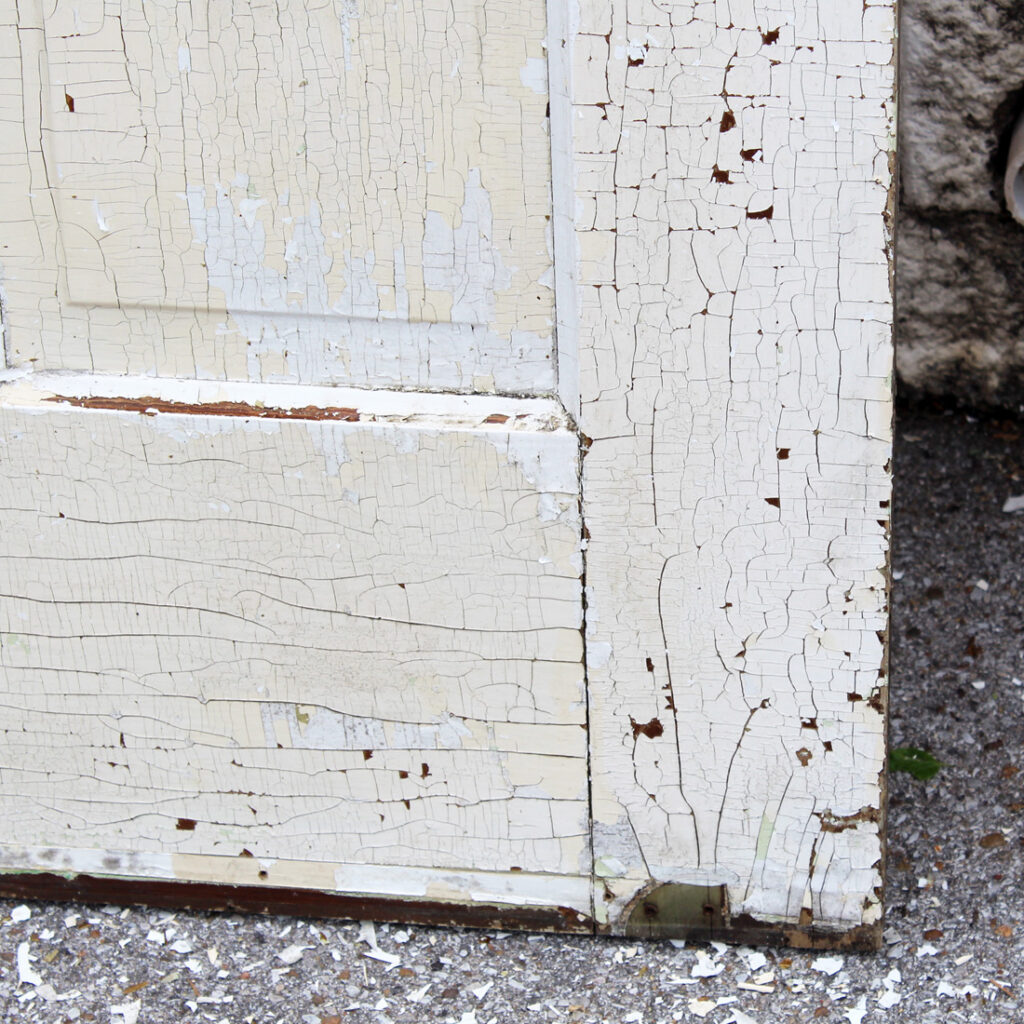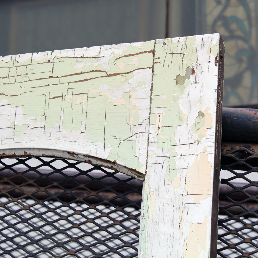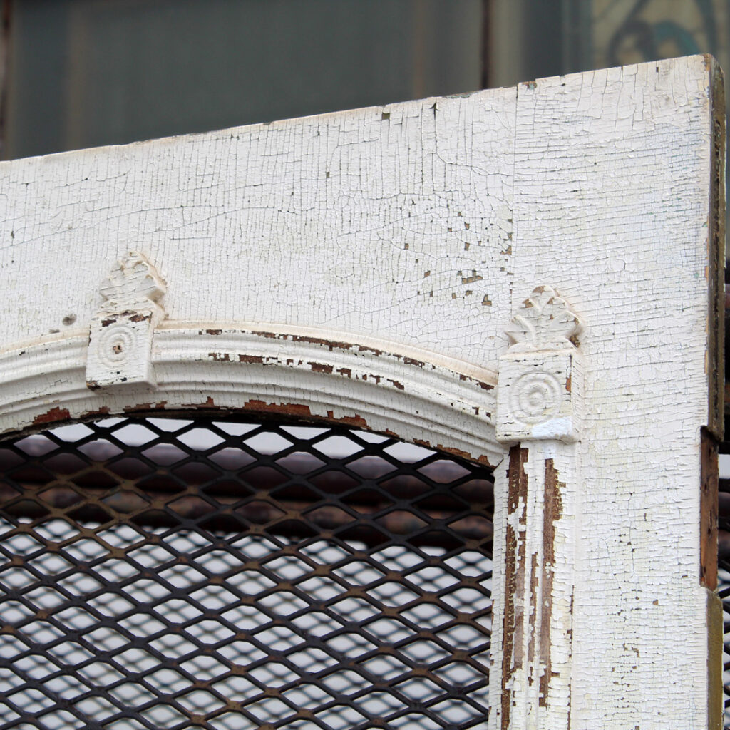 A beautiful antique Eastlake door, dating from the 1880s and salvaged from a home in Indiana. This old door features a half-view arched window, chippy paint, and playful raised trim. The door is in good antique condition with the expected chips, dings, and wear typical of an old door; the glass is missing (as pictured). It measures approx. 32″ wide, 79-1/2″ tall, and 1-3/8″ thick. This door requires a custom shipping quote; please contact us if you have any questions. Coordinating doors can be found under product codes NED2680-RW & NED2669-RW.