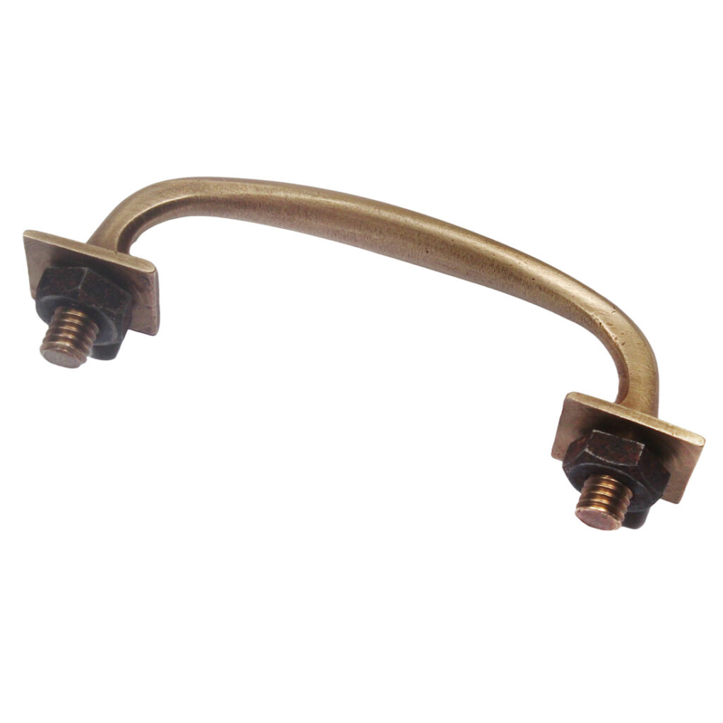 Lovely antique brass pull handles, dating from the early 1900’s. These handle-style drawer pulls are in excellent antique condition with a nicely aged brass patina. Each handle measures 4-1/2″ wide, 7/8” tall and project 1-1/4″; the screws can accommodate a 3/8″ thick door or drawer. THE PRICE LISTED IS FOR EACH PULL.