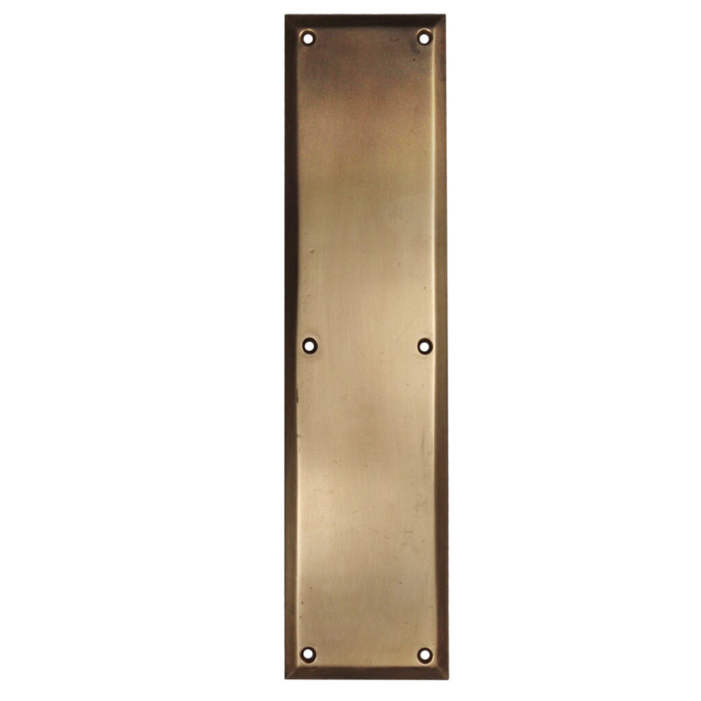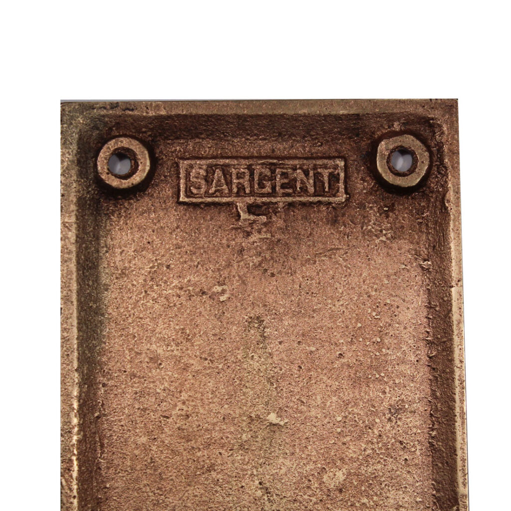 A beautiful antique cast bronze door push plate by Sargent, dating from the early 1900’s. This push plate is in excellent antique condition with a gorgeous aged finish. The plate measures 3-1/2” wide and 14” tall.