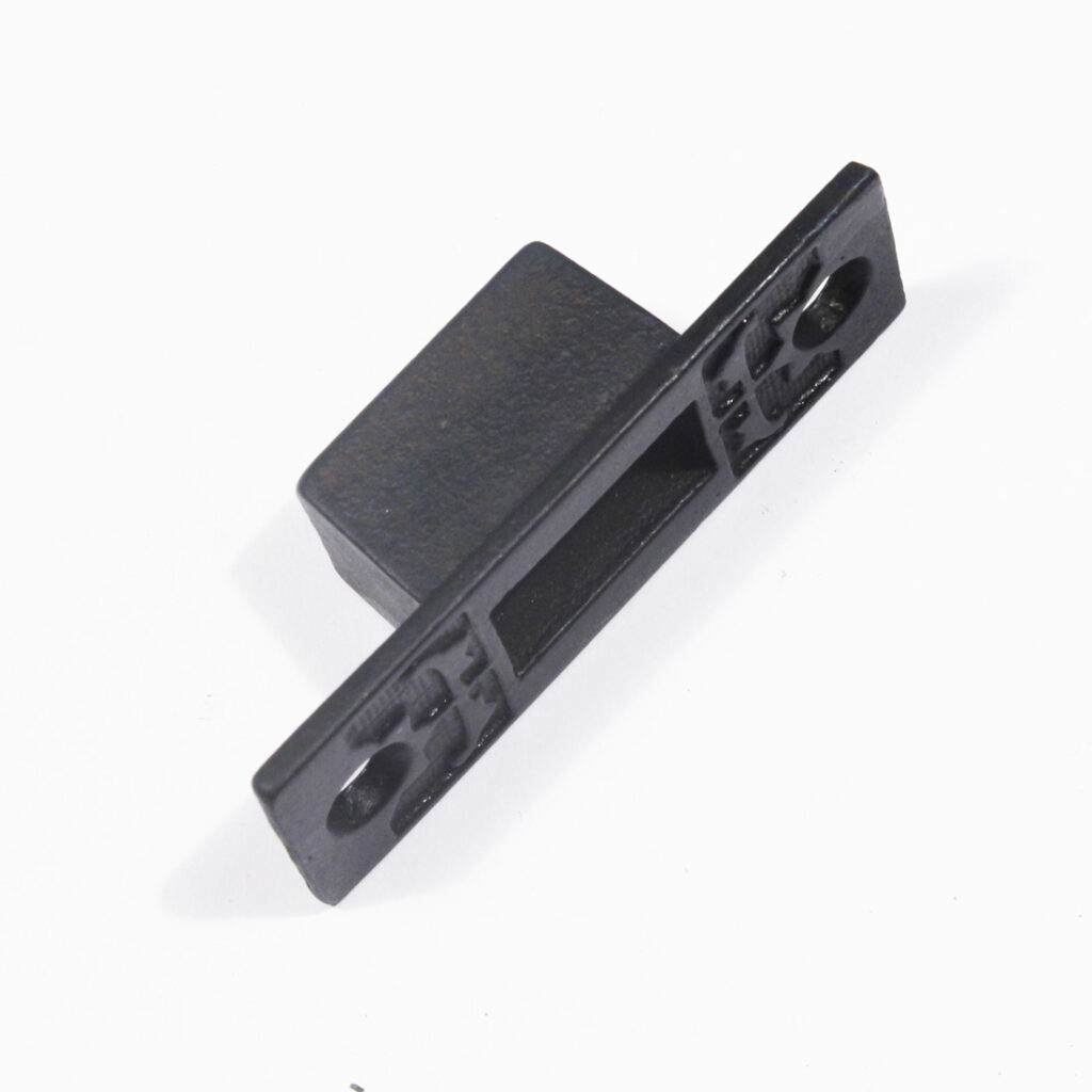 An amazing “New Old Stock” antique Eastlake cast iron surface mount foot bolt, dating from the late 1800’s. This bolt features a playful decorative Eastlake design, and is in excellent antique condition. The latch body measures 5-1/8” long, 2-1/8″ wide, and has a 7/8″ projection; the catch piece measures 2-7/8″ long by 1″ wide, and projects 7/8″. If ordering multiple items, please contact us for a combined shipping quote.