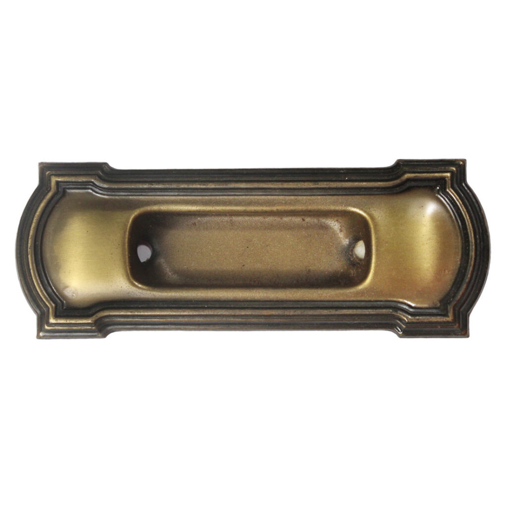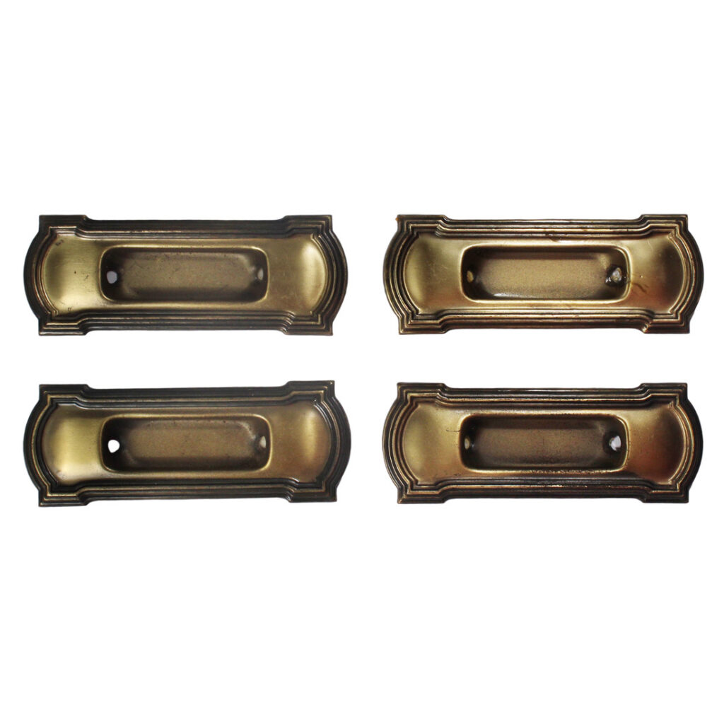 Beautiful matching antique sash lifts or petite pocket plates, dating from the early 1900’s. These plates are in excellent condition with a beautiful aged brass over steel finish. Each plate measures 4” wide by 1-1/2” tall. THE PRICE LISTED IS FOR EACH SASH LIFT. If ordering multiple items, please contact us for a combined shipping quote.