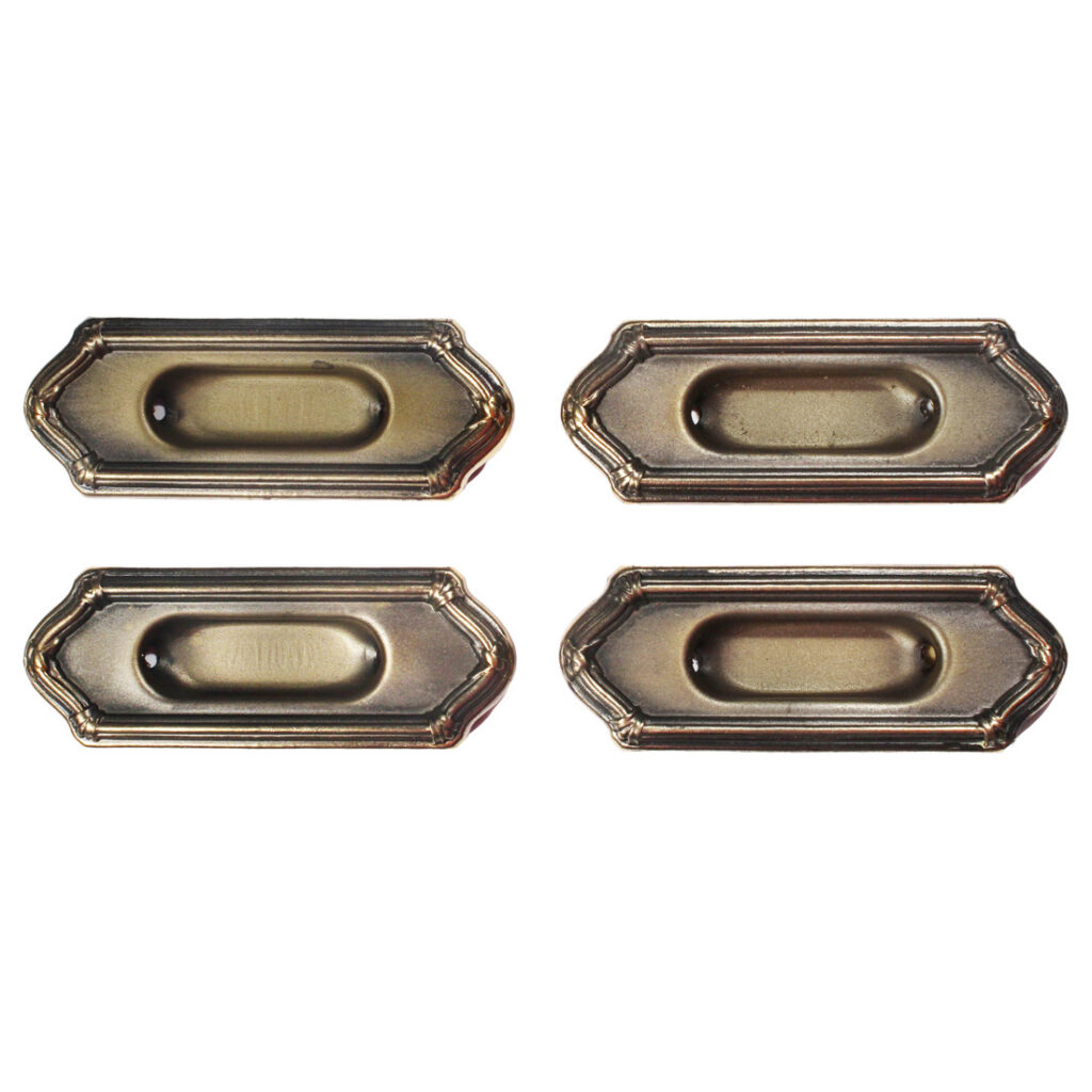 Beautiful matching antique sash lifts or petite pocket plates, dating from the early 1900’s. These plates are in excellent condition with a beautiful aged brass over steel finish. Each plate measures 4” wide by 1-1/2” tall. THE PRICE LISTED IS FOR EACH SASH LIFT. If ordering multiple items, please contact us for a combined shipping quote.