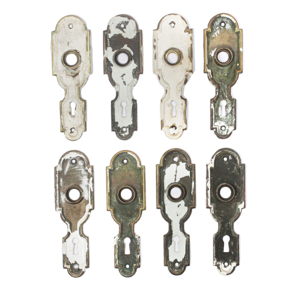 Amazing antique doorplates in Earle’s “Hardwick” pattern, dating from the early 1900’s. These door plates are in good antique condition, and the finish on each door plate may vary, as shown. Each escutcheon measures 1-7/8″ wide and 6″ tall. If you are ordering multiple items, please contact us for an accurate shipping quote. THE PRICE LISTED IS FOR EACH DOOR PLATE.