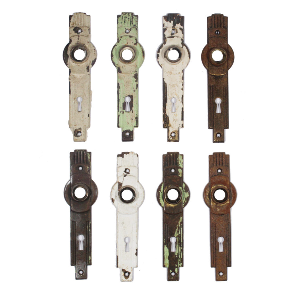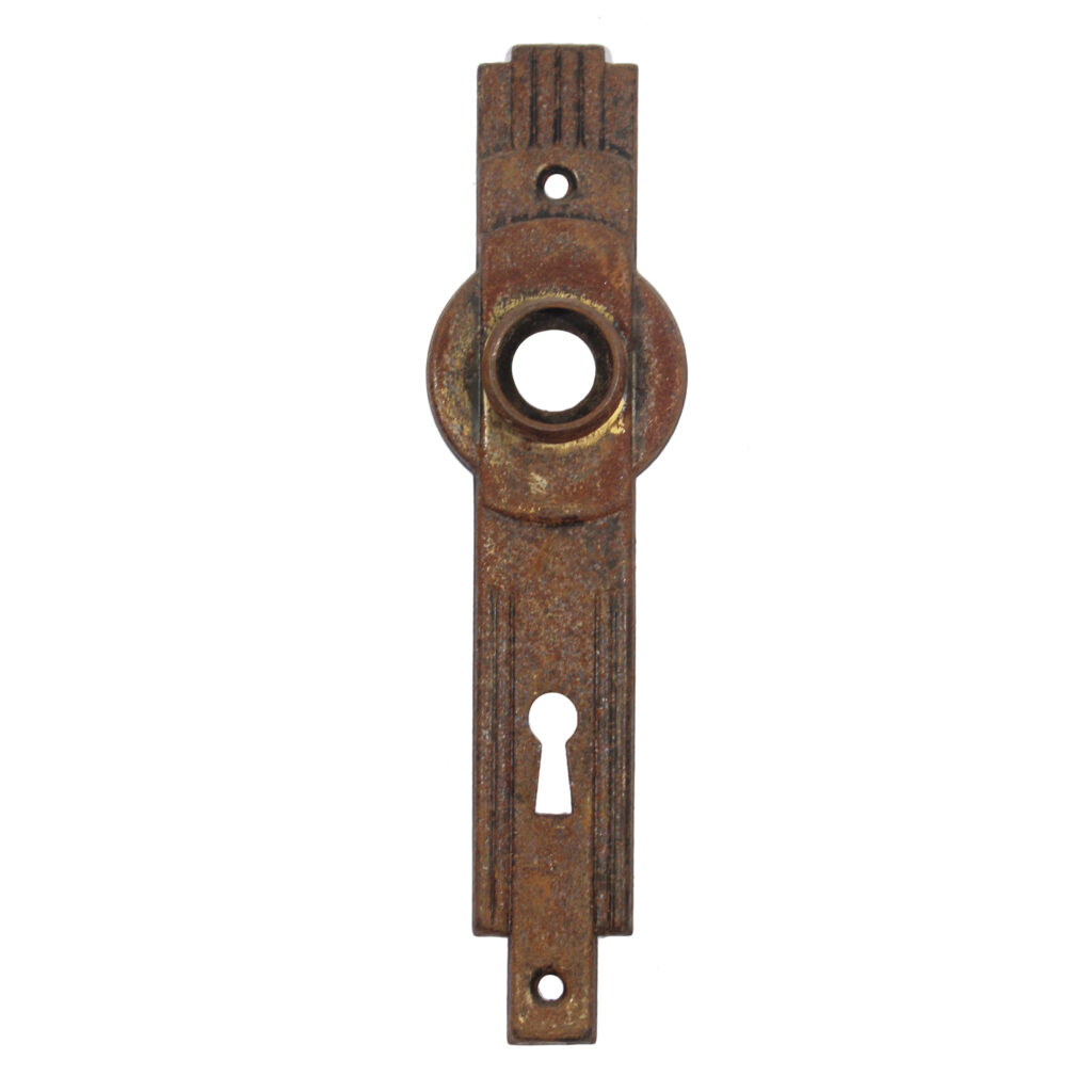 Fabulous matching antique Art Deco doorplates, dating from the 1920’s or 1930’s. Each door plate measures 1-5/8″ wide and 6-3/8″ tall. The plates are in very good antique condition with varying finishes (as pictured). THE PRICE LISTED IS FOR EACH PLATE. If you are ordering multiple items, please contact us for an accurate shipping quote.