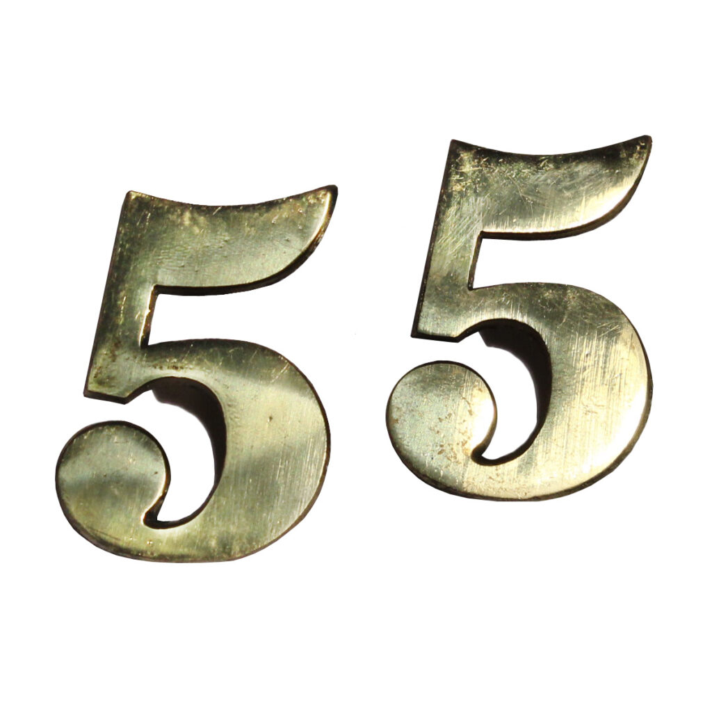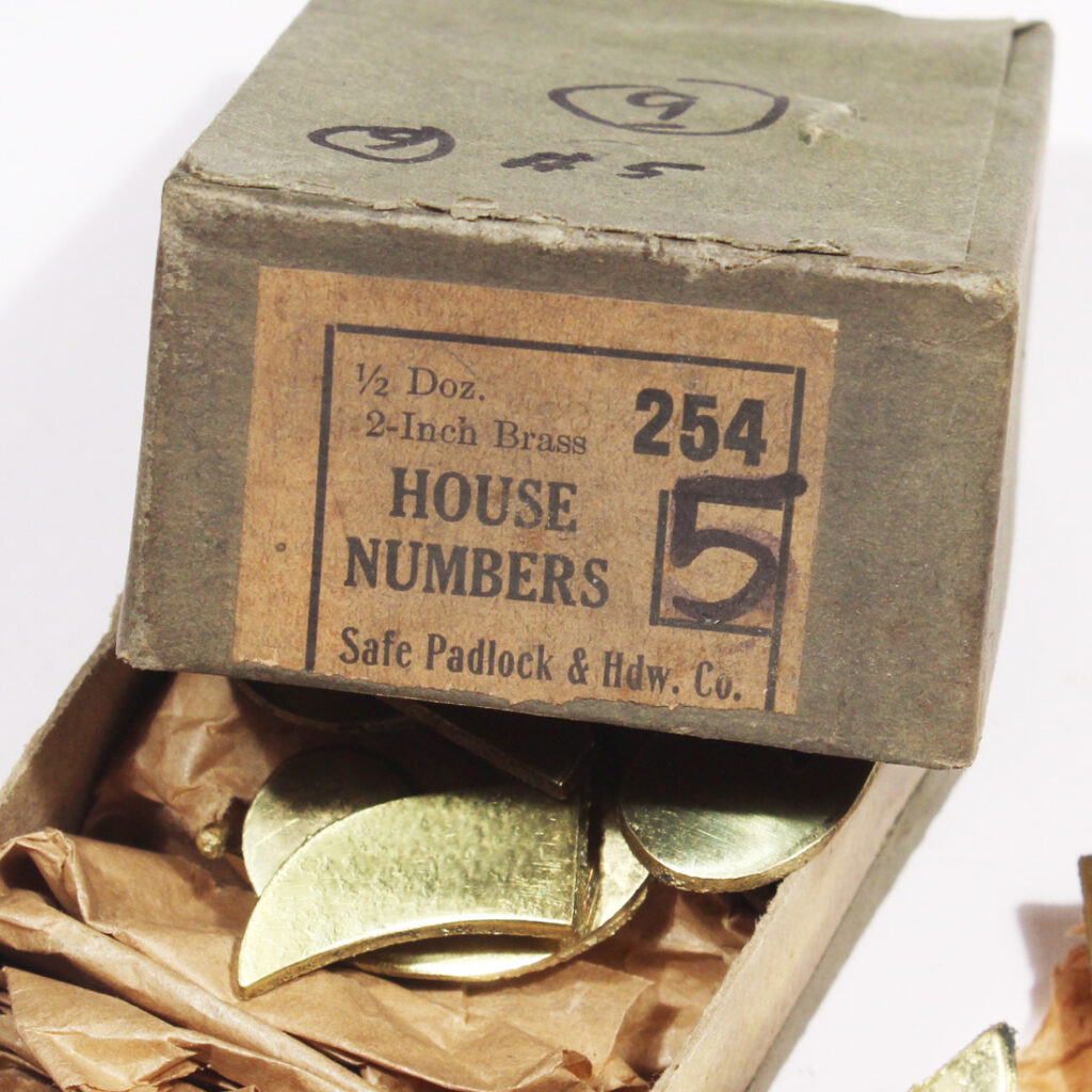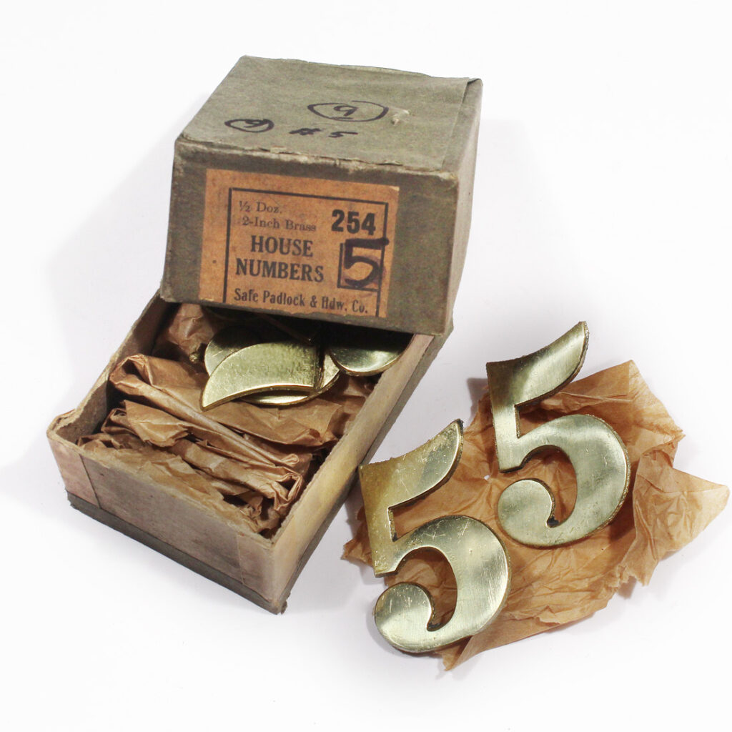 Fabulous “New Old Stock” brass house numbers, dating from the early 1900’s. These petite numbers are in excellent antique condition with a beautiful brass finish. Each number measures approx. 1-3/8″ wide, 2″ tall, and projects 1/2″. THE PRICE LISTED IS FOR EACH HOUSE NUMBER. If ordering multiple items, please contact us for a combined shipping quote.