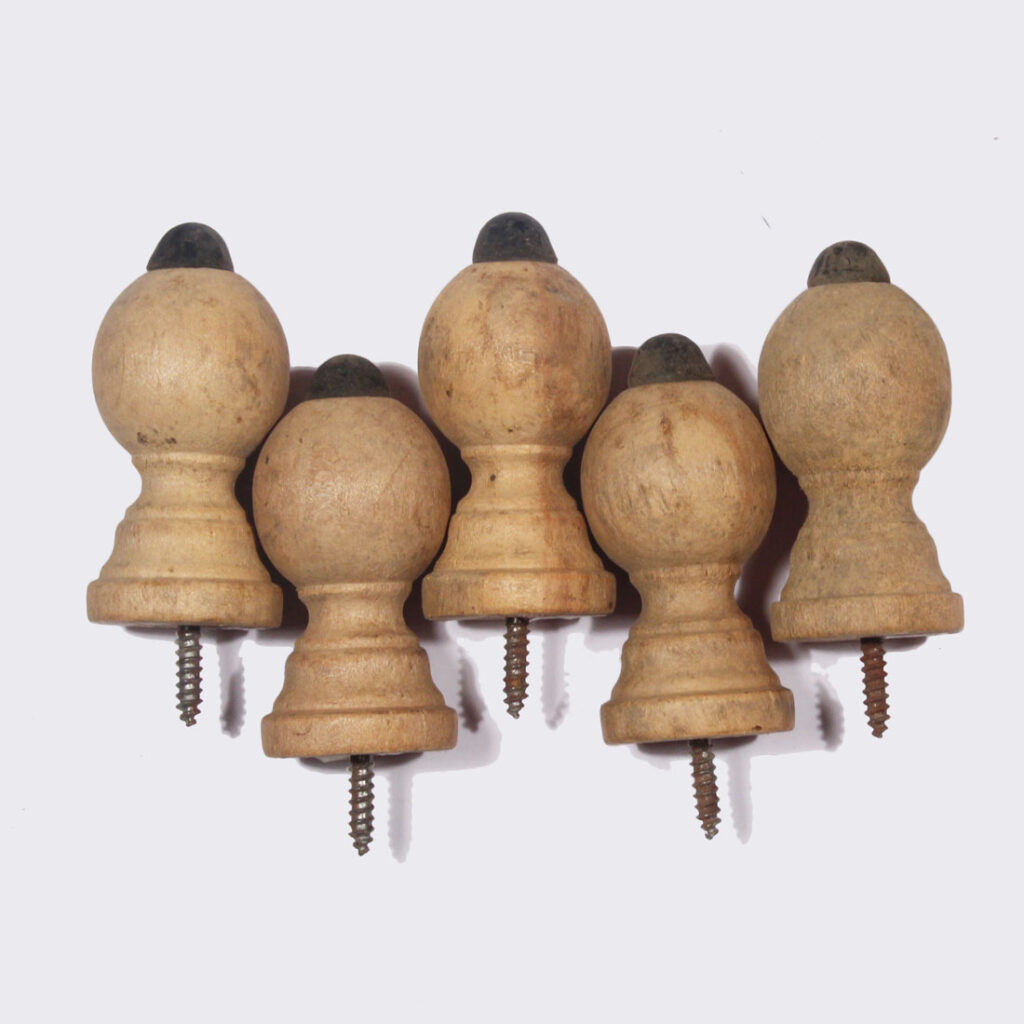 Matching antique “New Old Stock” wood door stops. Each stop is in excellent antique condition, and measures 1-1/4″ wide by 2-3/4″ deep; the screw projects 5/8″. If ordering multiple items, please contact us for a combined shipping quote. THE PRICE LISTED IS FOR EACH DOOR STOP.