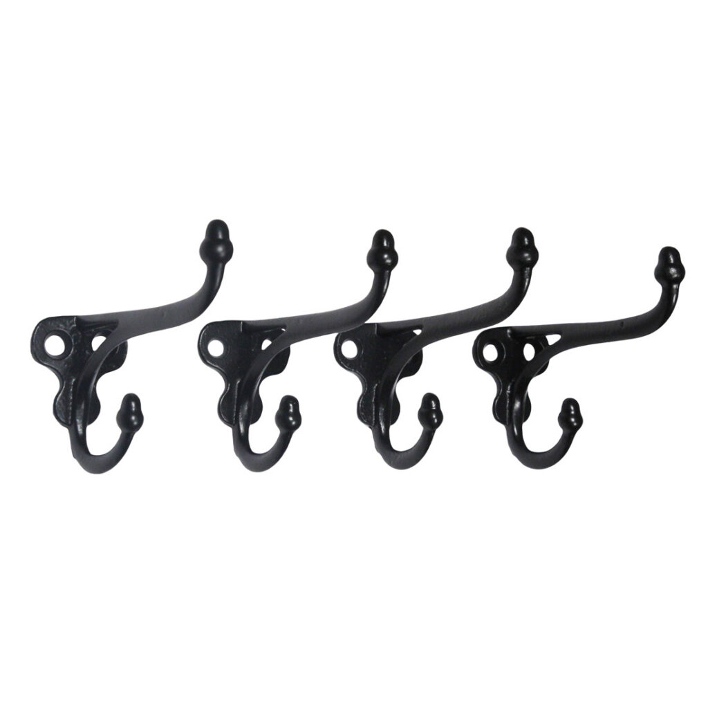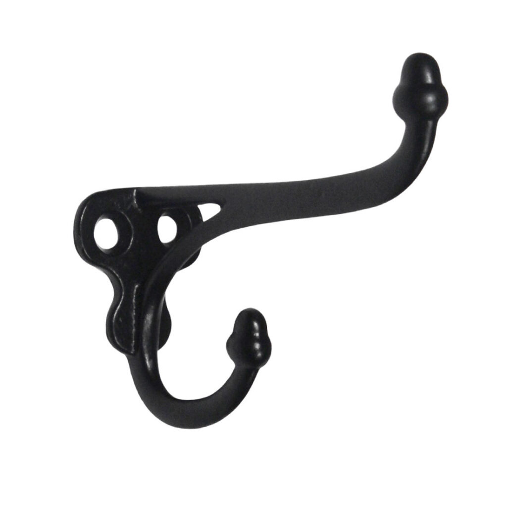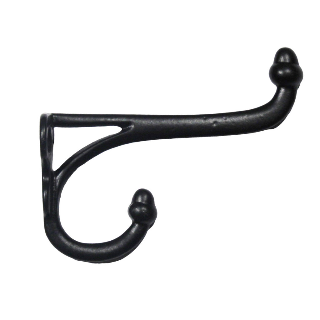 Matching antique cast iron hooks, each featuring acorn finials. Each hook is in very good antique condition with a dark patina; the hook’s each measure 1-1/2″ wide, 3” tall, and has a 3-3/4″ projection. THE PRICE LISTED IS FOR EACH HOOK. If ordering multiple items, please contact us for a combined shipping quote.