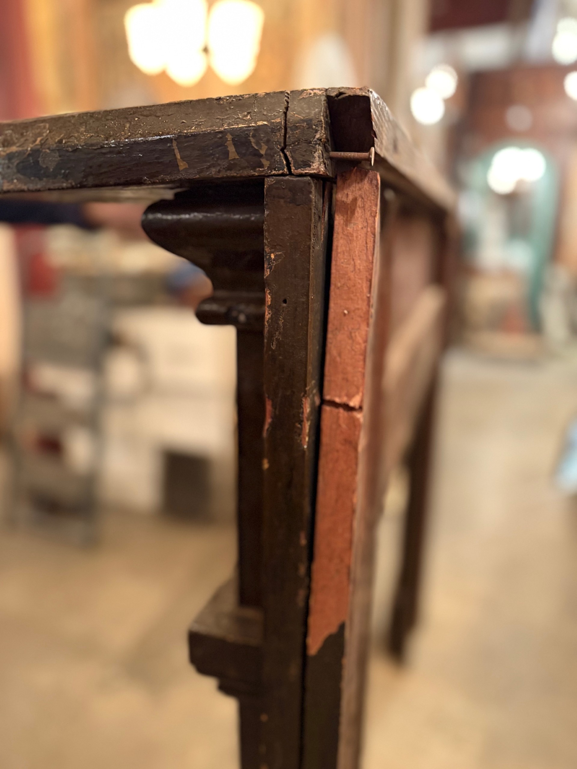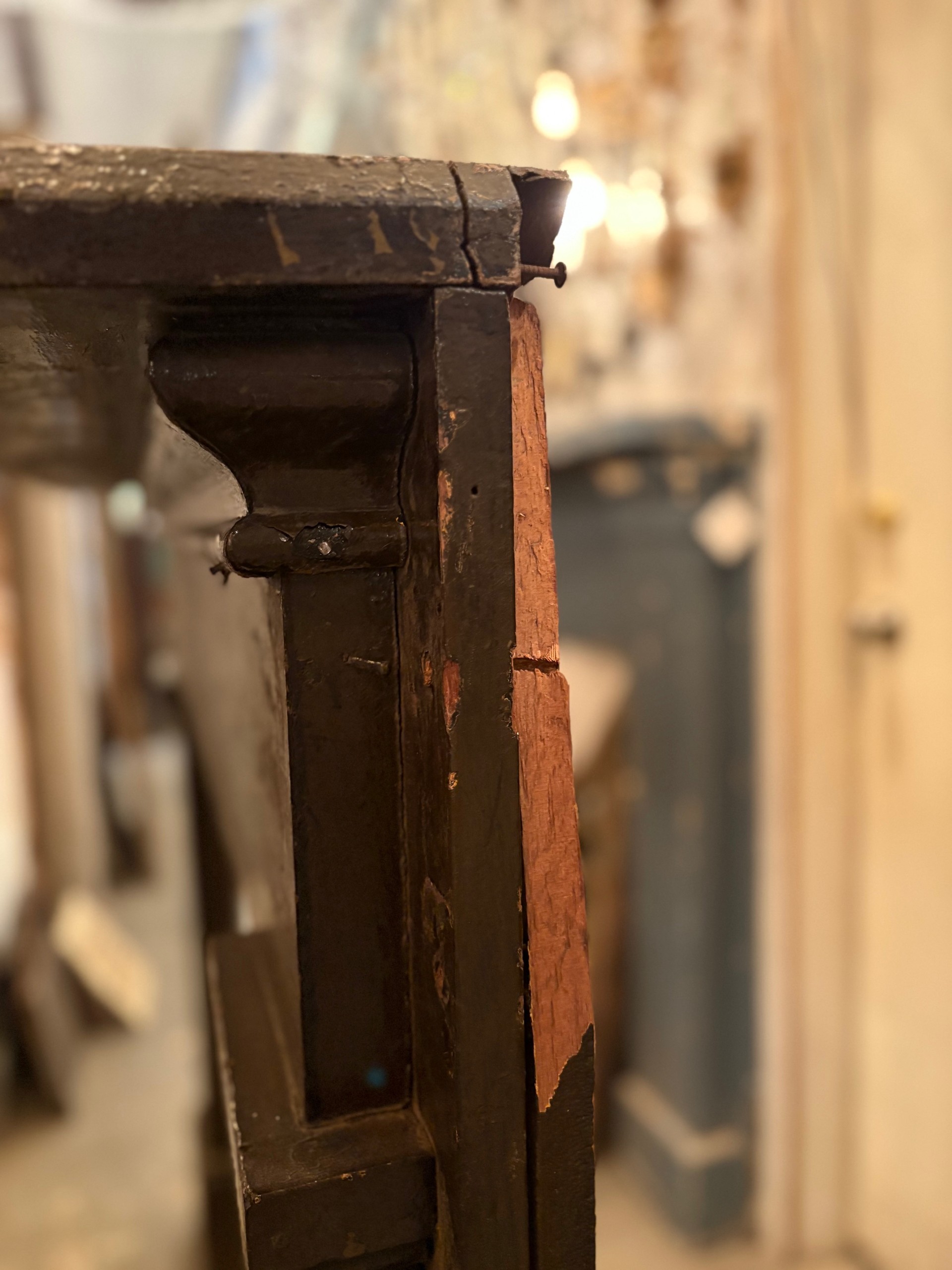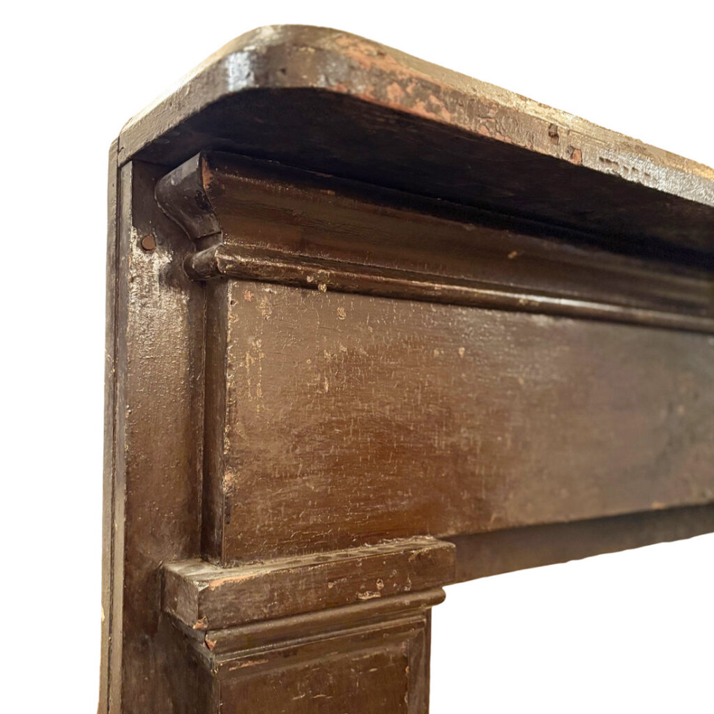 An understated antique fireplace mantel, dating from the early 1900’s, and salvaged out of a home in Nashville, TN. The mantel is in good condition with the expected wear, nicks, and chips including a cracked/missing piece of trim along the edge (as pictured) It measures 57-1/2″ wide, 51-1/4″ tall and 9-1/2″ deep, and has a firebox opening of approximately 35-1/4″ wide and 36-1/2″ tall. This piece requires a custom shipping quote; please contact us if you have any questions.
