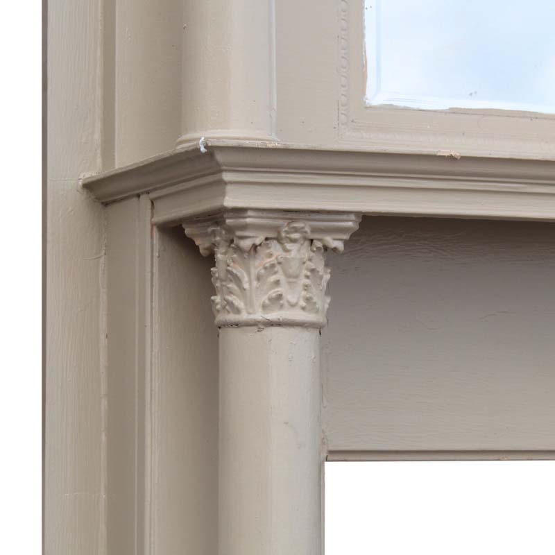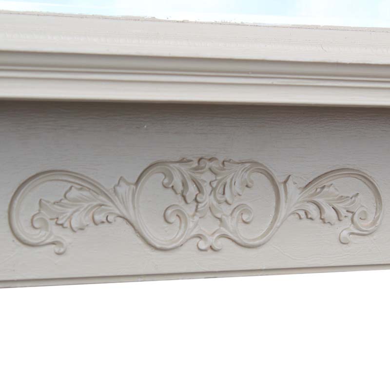A stunning antique painted wood fireplace mantel with a beveled mirror, dating from the early 1900’s and salvaged from a home in Nashville, TN. The fireplace mantel is in very good condition with the expected wear, chips, and scratches typical of an antique mantel; the beautiful beveled mirror has slight age spots as pictured. The mantel measures 58” wide, 75-1/2” tall, and projects 11-3/4”. The firebox opening is 41-1/2” wide and 39” tall. This piece requires a custom shipping quote, please contact us if you have any questions.