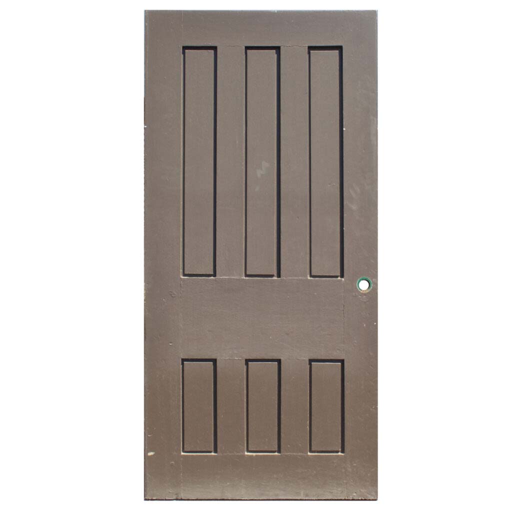 An impressive antique wood door, dating from the early 1900’s and salvaged from Taproot Farms in Franklin, TN. This old 6-paneled door is in good antique condition with the expected chips, dings, and holes typical of an old door (as pictured). This reclaimed door measures 38-1/2″ wide, 81-1/2″ tall, and 1-5/8″ thick. It requires a custom shipping quote; please contact us if you have any questions.