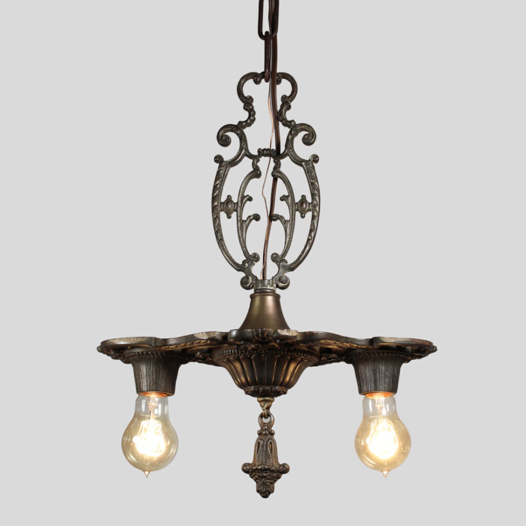 SOLD Antique Cast Iron Two-Light Chandelier by Markel Electric