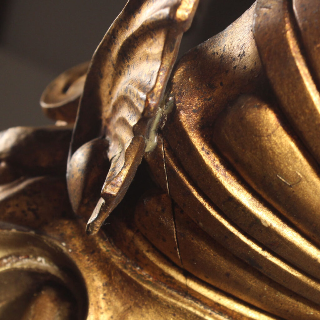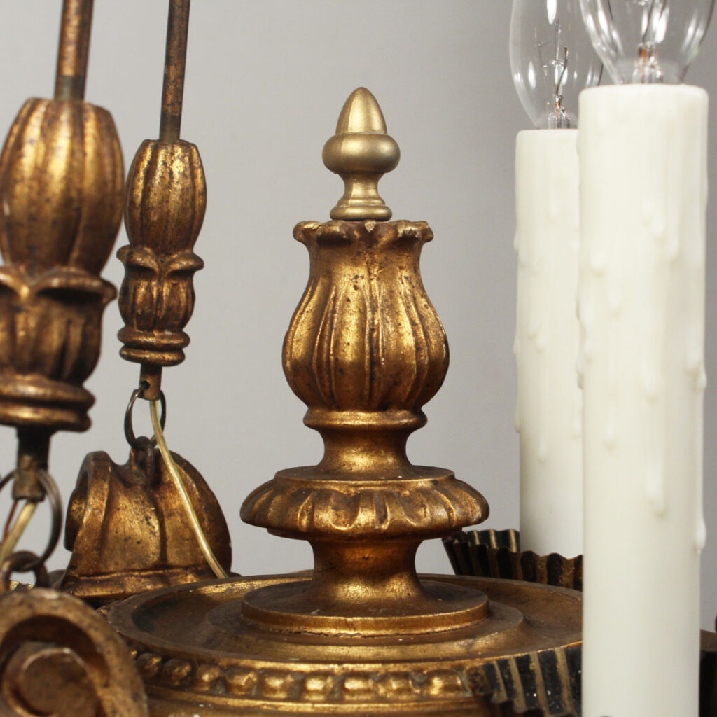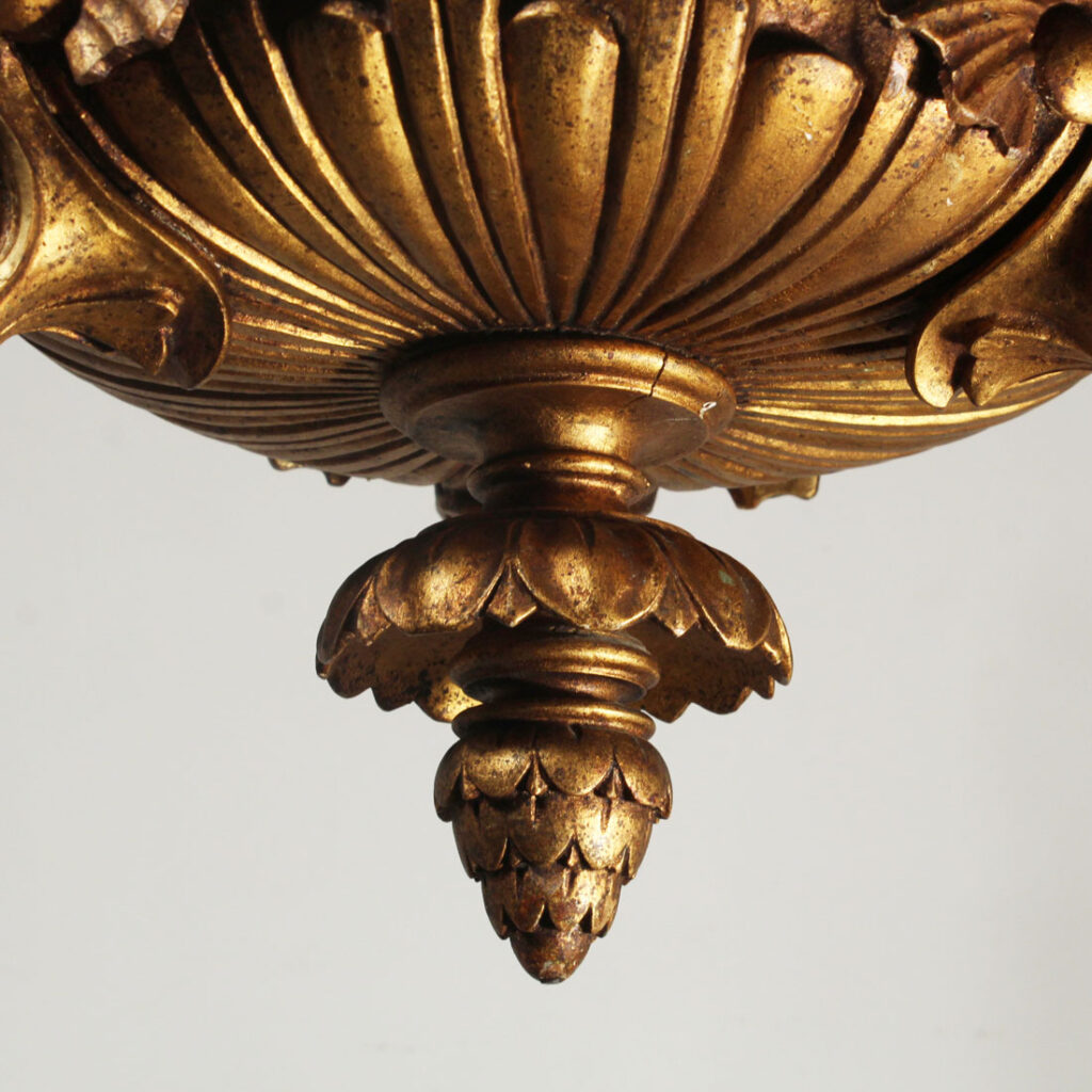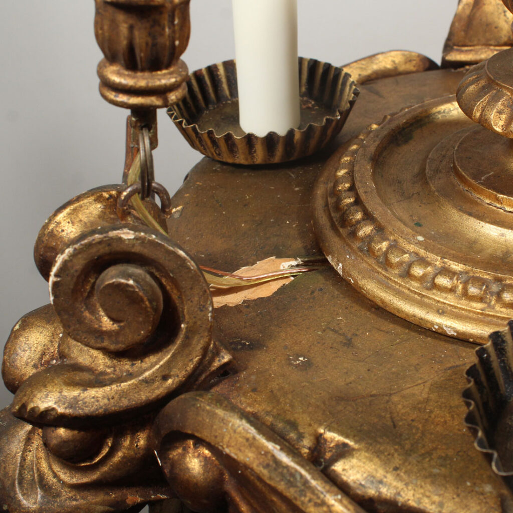 An amazing antique wooden three-light chandelier, dating from the early 1900’s and salvaged out of a home in New York. This chandelier features stylized carved wooden figures, and is in very good antique condition (pictured); it has been professionally rewired and comes with all the necessary attachments for modern installation. The chandelier measures 16-1/2” wide by 44″ long overall. This chandelier requires a custom shipping quote; please contact us if you have any questions.