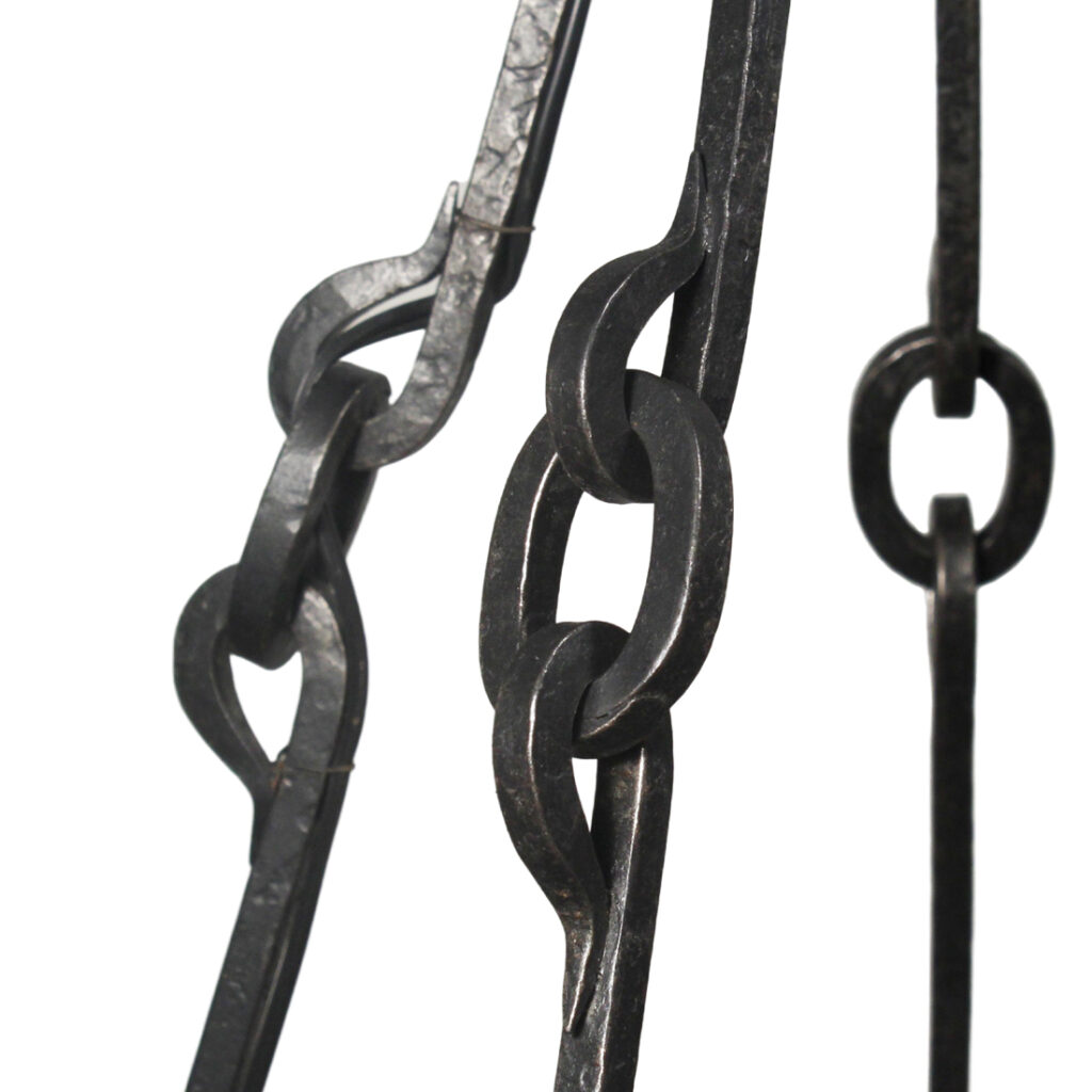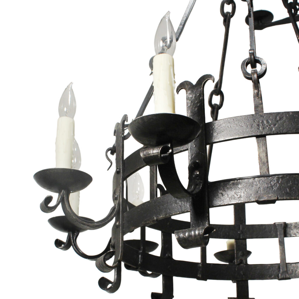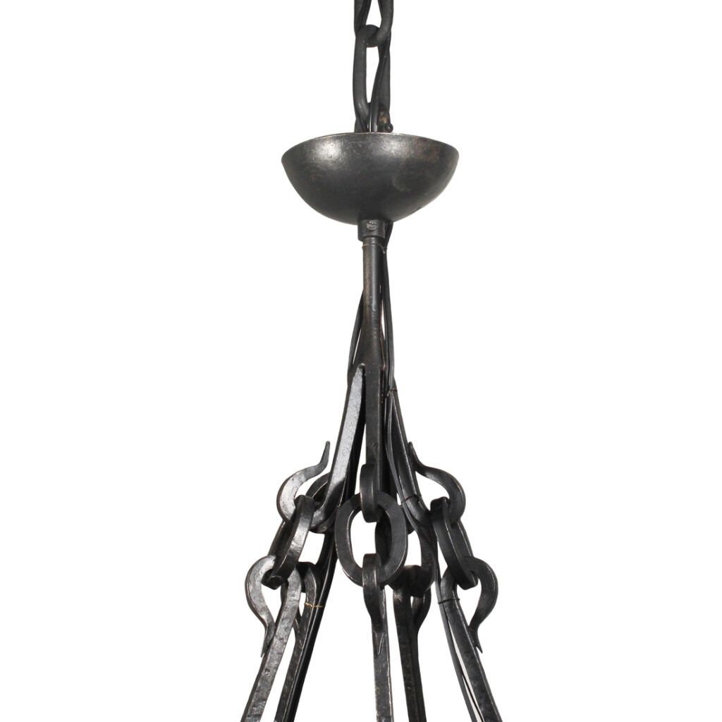 A substantial antique ten-light cast iron chandelier, dating from the early 1900’s and salvaged out of a home in Nashville, TN. This fixture would look lovely in Tudor, Spanish Revival, or Gothic Revival homes. It is in excellent antique condition, and has been professionally rewired with all the necessary attachments for modern installation. The chandelier body measures 36-1/4″ wide, 48″ tall, and is 67-1/4″ long overall. Due to the size of this fixture, it requires a custom shipping quote; please contact us if you have any questions.