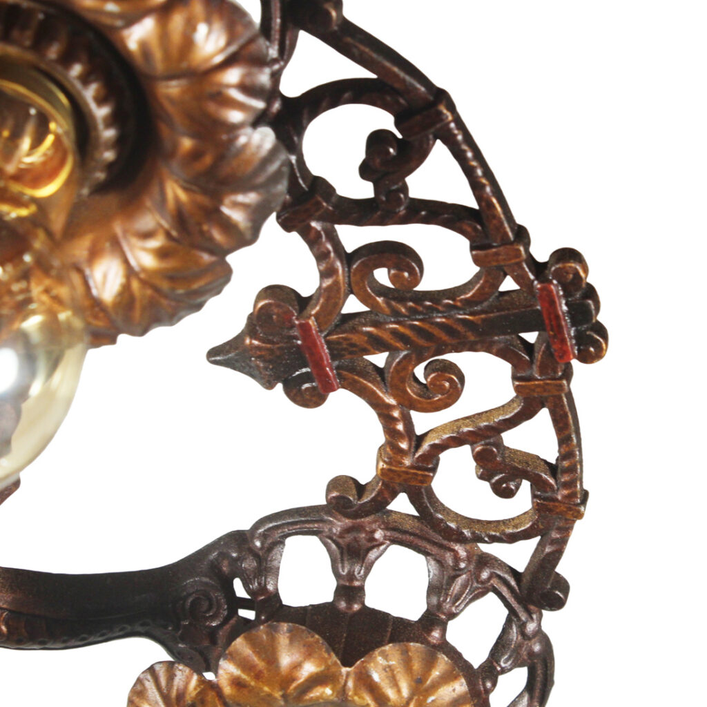 Antique Cast Iron Flush-Mount Chandelier with Exposed Bulbs