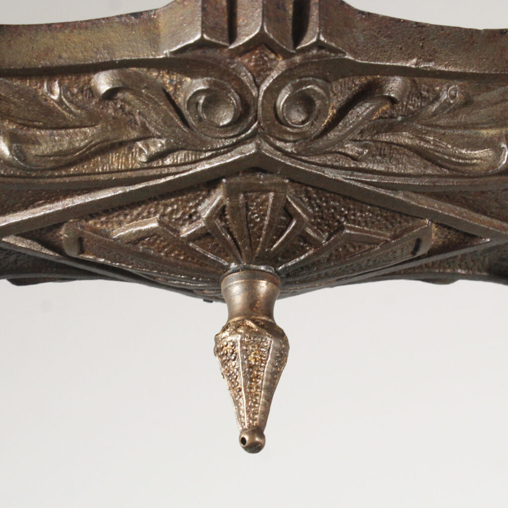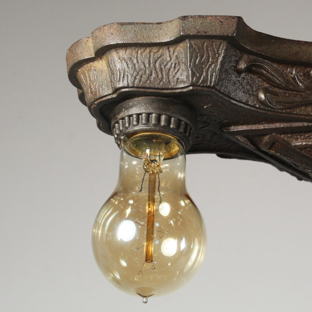 A fabulous antique Neoclassical two-light flush mount fixture, signed by Lasalle Mfg and dating from the early 1900’s. This flush mount is in excellent condition, and has been professionally rewired with all the necessary attachments for modern installation. The fixture measures 12-1/4″ long, 5-5/8″ wide, and 4-1/4″ tall (does not include bulbs).
