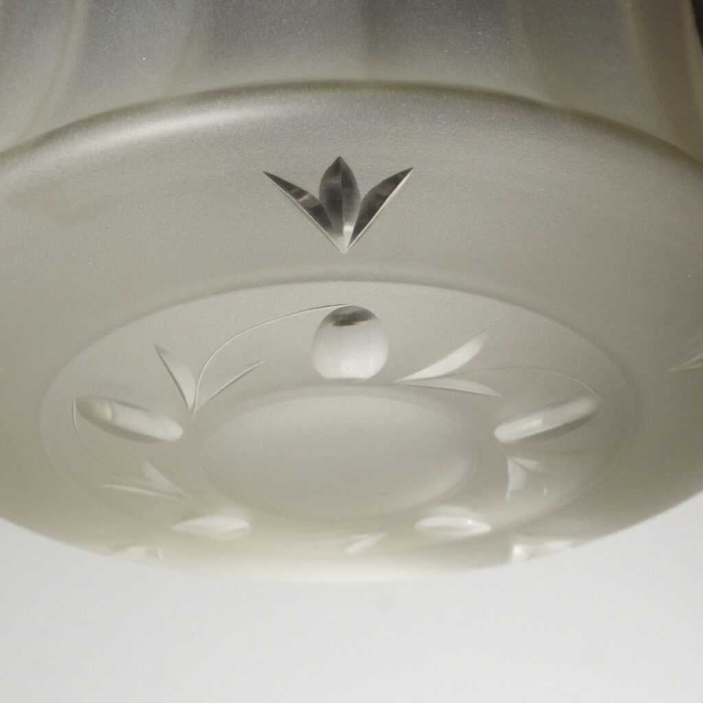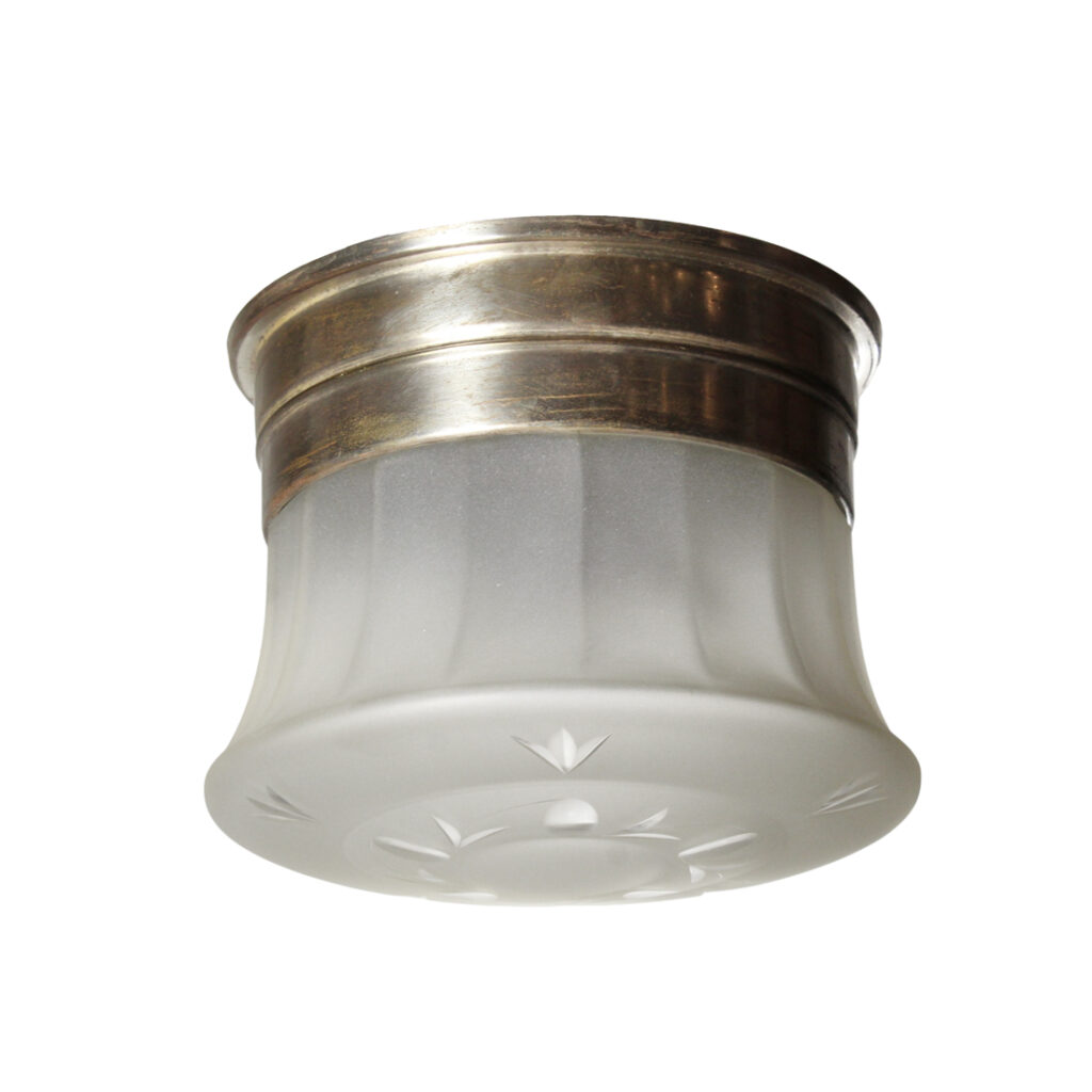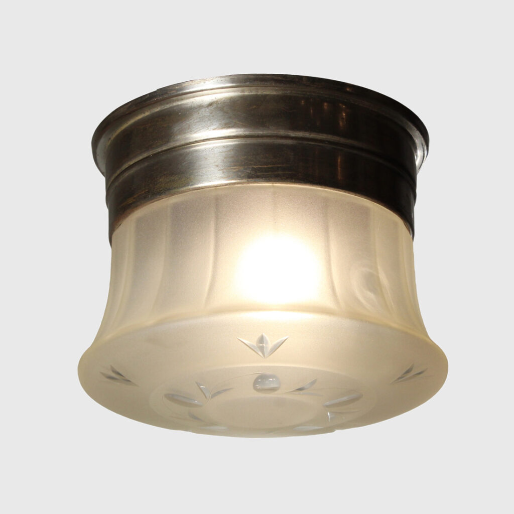 Antique flush mount light fixture with a wheel-cut glass shade, salvaged from the historic “Windsor” home—also known as the Castle Above the Clouds—perched atop Lookout Mountain, Tennessee. Built in the 1930s by George and Elizabeth Scholze, the residence reflects the couple’s refined taste and attention to detail. George Scholze, second-generation owner of the prominent Scholze Tannery in Chattanooga, helped earn the city its nickname, “Saddle Capital of the World.”