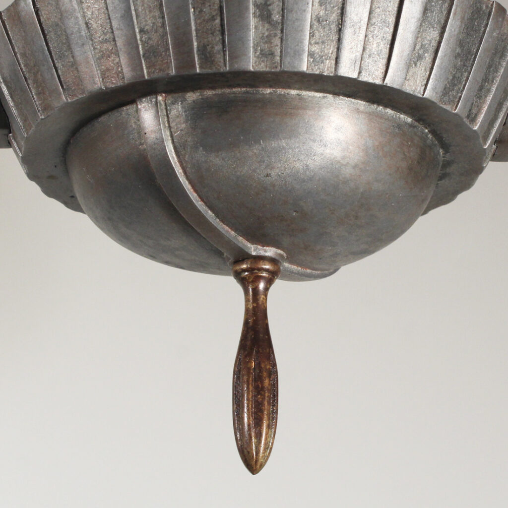 A sleek antique two-light flush mount fixture, dating from the early 1900’s and salvaged out of a home in Albany, NY. This flush mount is in excellent antique condition, and has been professionally rewired with all the necessary attachments for modern installation. The fixture measures 14″ long, 6-5/8″ wide, and 5″ tall (does not include bulbs).