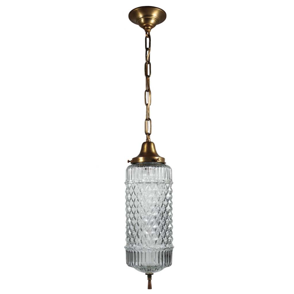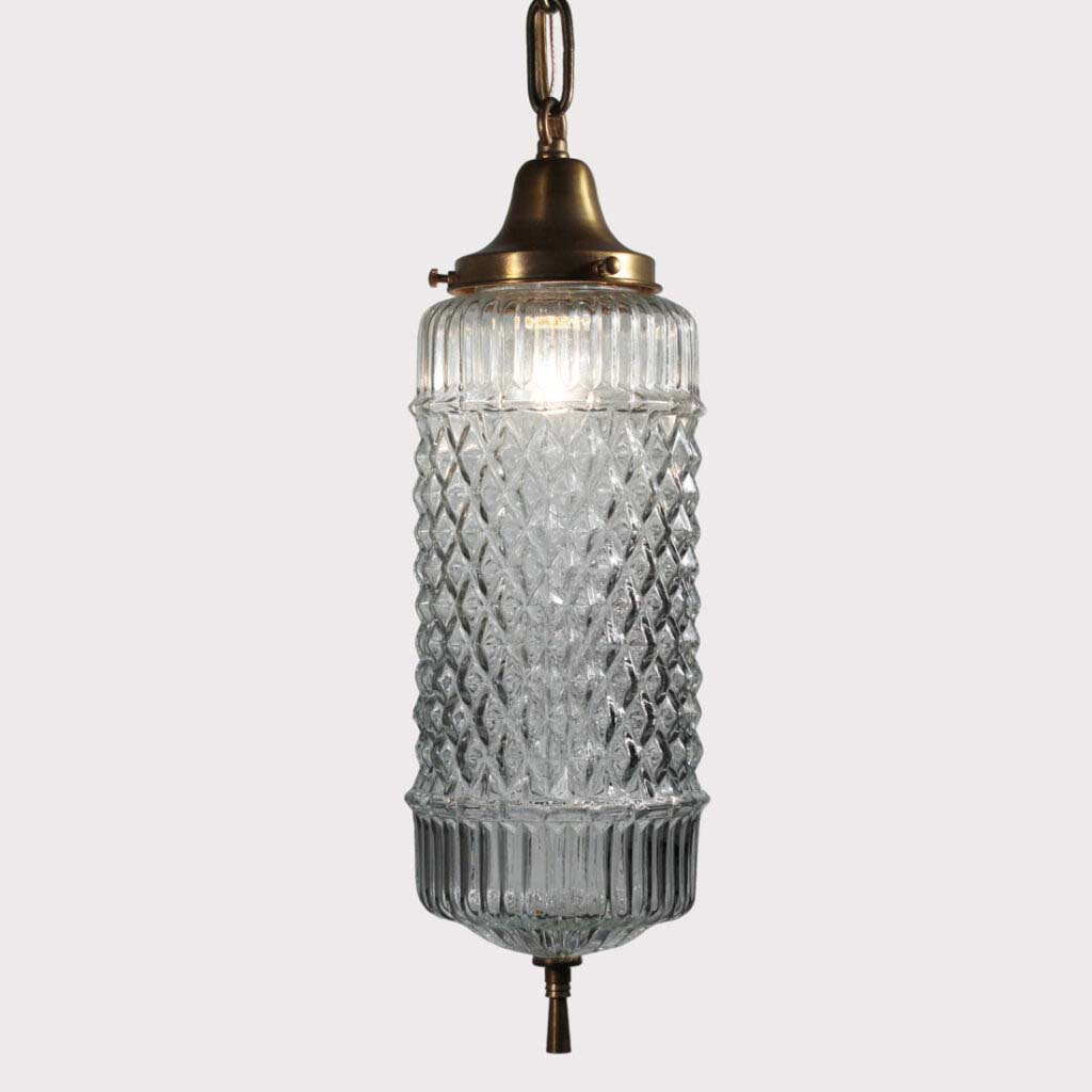 SOLD Vintage Pendant Light with Cylindrical Glass Shade