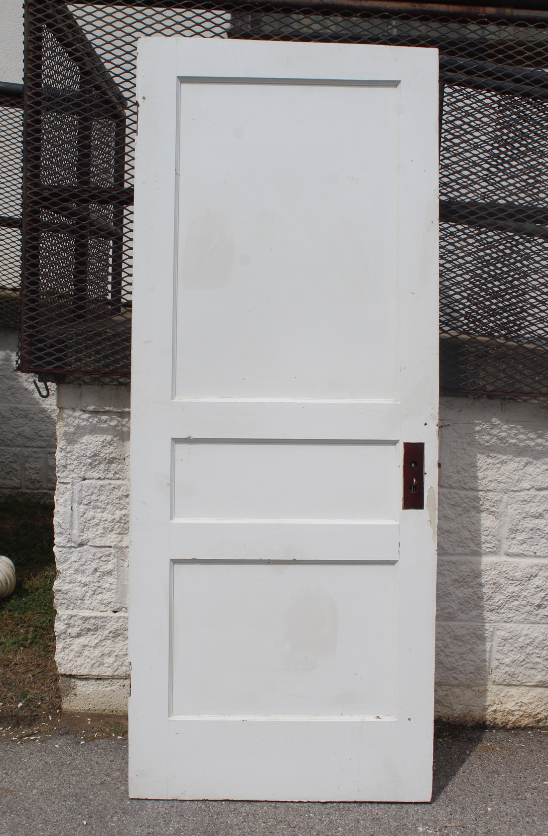 An antique three-panel solid wood door with a painted finish, salvaged out of a home in Tennessee. This door is in very good antique condition, with the expected wear as pictured. The door measures 32” wide by 79-1/2” tall, and is 1-3/8” thick. The measurements for this door are approximate, and may vary 3/8 – 1/4″. This door requires a custom shipping quote; please contact us if you have any questions.