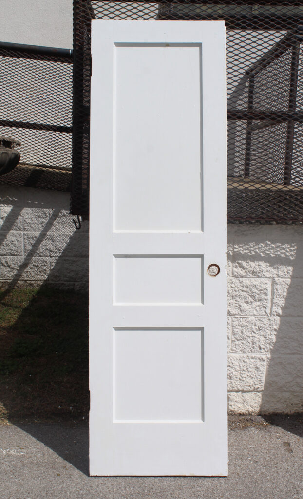 An antique three-panel solid wood door with a painted finish, salvaged out of a home in Franklin, TN. This door is in very good antique condition, with the expected wear as pictured. The door measures 23-3/4” wide by 80” tall, and is 1-3/8” thick. The measurements for this door are approximate, and may vary 3/8 – 1/4″. This door requires a custom shipping quote; please contact us if you have any questions.