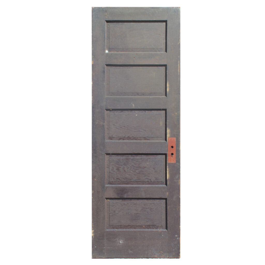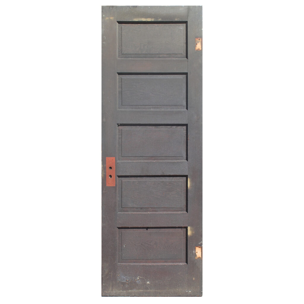 An antique five-panel solid wood door with a stained finish, salvaged out of a home in Tennessee. This door is in very good antique condition, with the expected wear as pictured. The door measures 28” wide by 80” tall. The measurements for this door are approximate, and may vary 3/8 – 1/4″. This door requires a custom shipping quote; please contact us if you have any questions.
