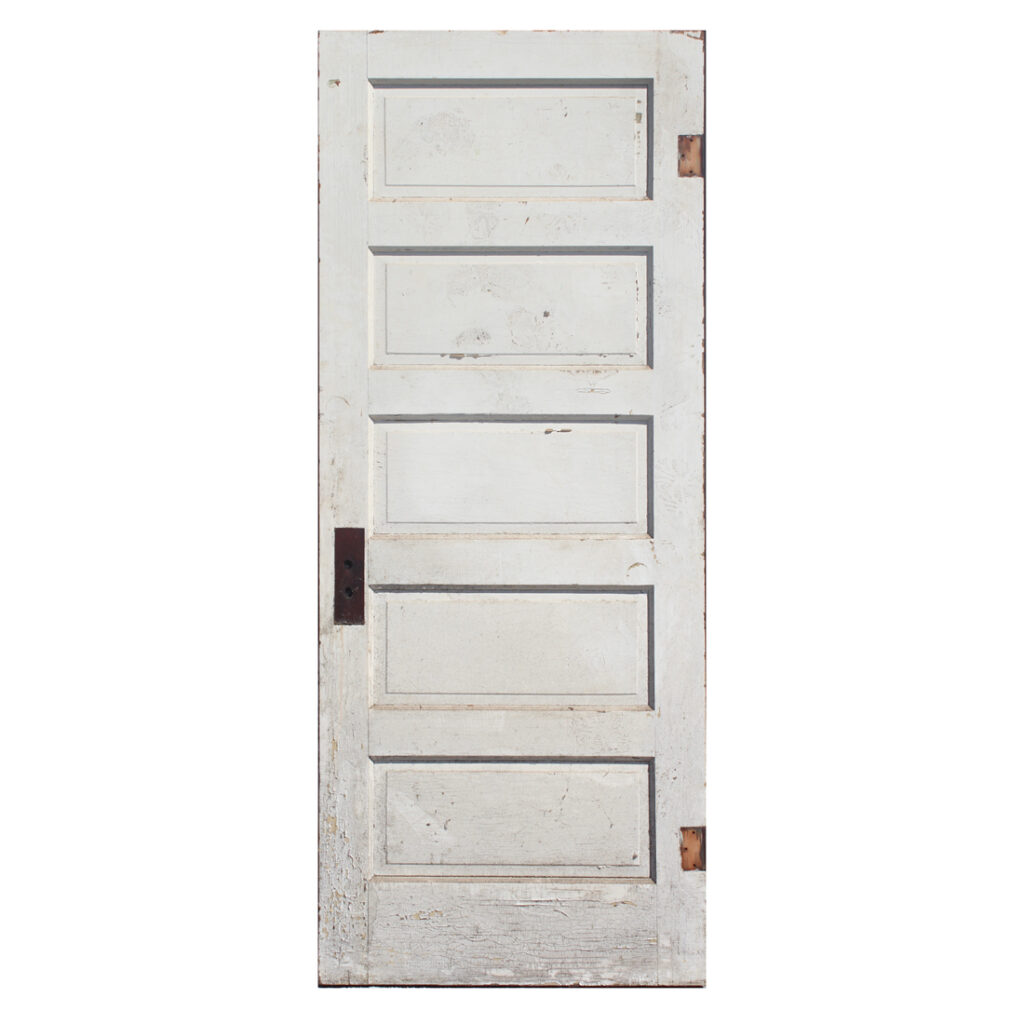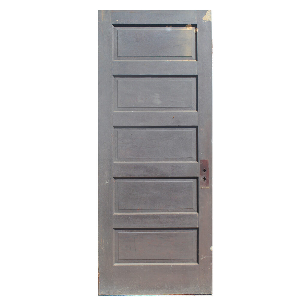 An antique five-panel solid wood door with a painted finish on one side, and a stained finish on the other, salvaged out of a home in Tennessee. This door is in very good antique condition, with the expected wear as pictured. The door measures 32” wide by 79” tall. The measurements for this door are approximate, and may vary 3/8 – 1/4″. This door requires a custom shipping quote; please contact us if you have any questions.